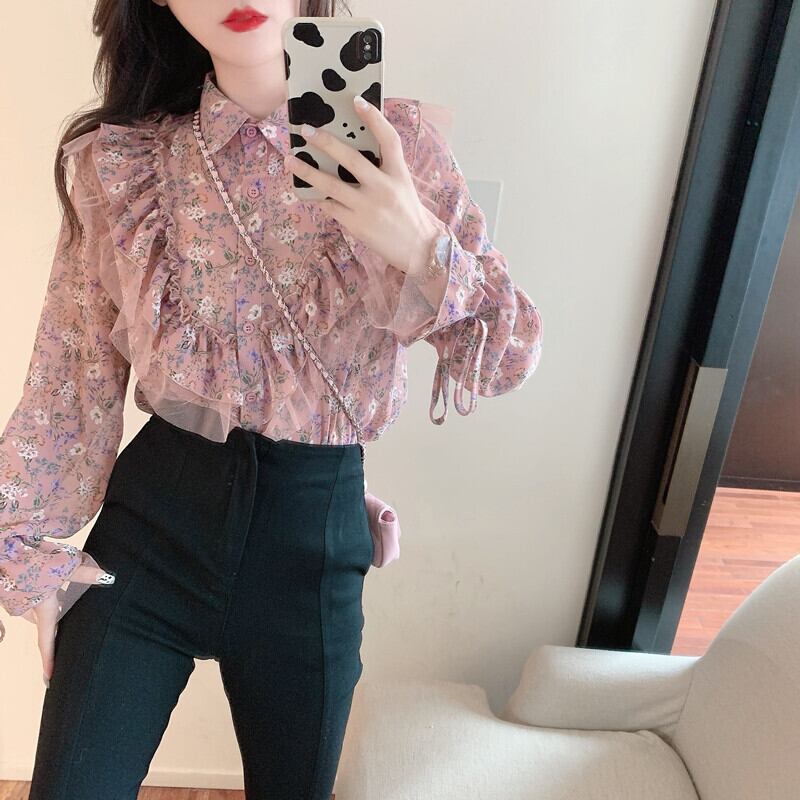 フローラルシャツ オータムトップス スタイル ロング 大人ガーリー スウィート キュート カジュアル 秋物 花柄 ガールズファッション50922845749