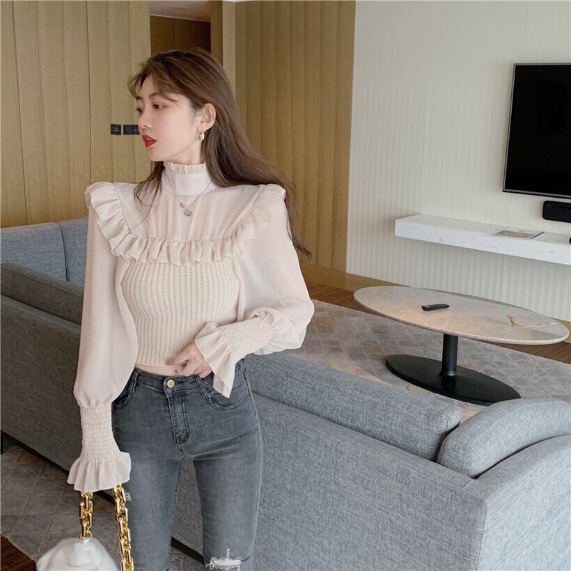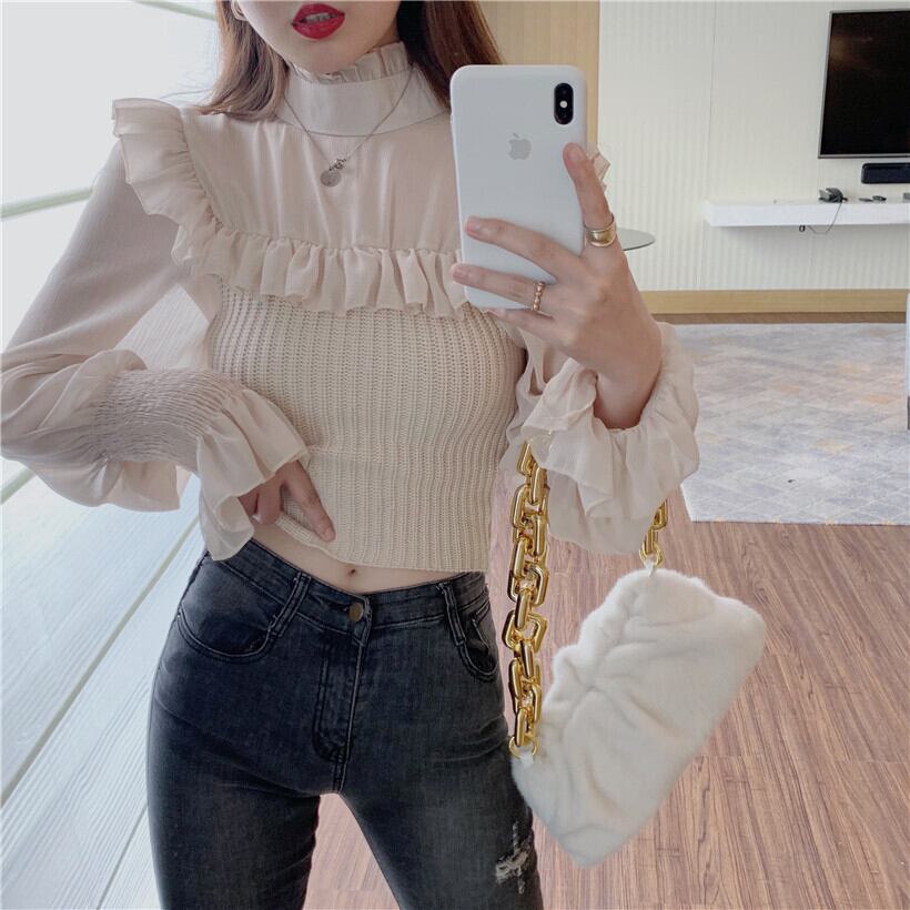 ラッフルオータムスリム薄手セーター ロング 秋物 ステッチ ガールズファッション98075047514