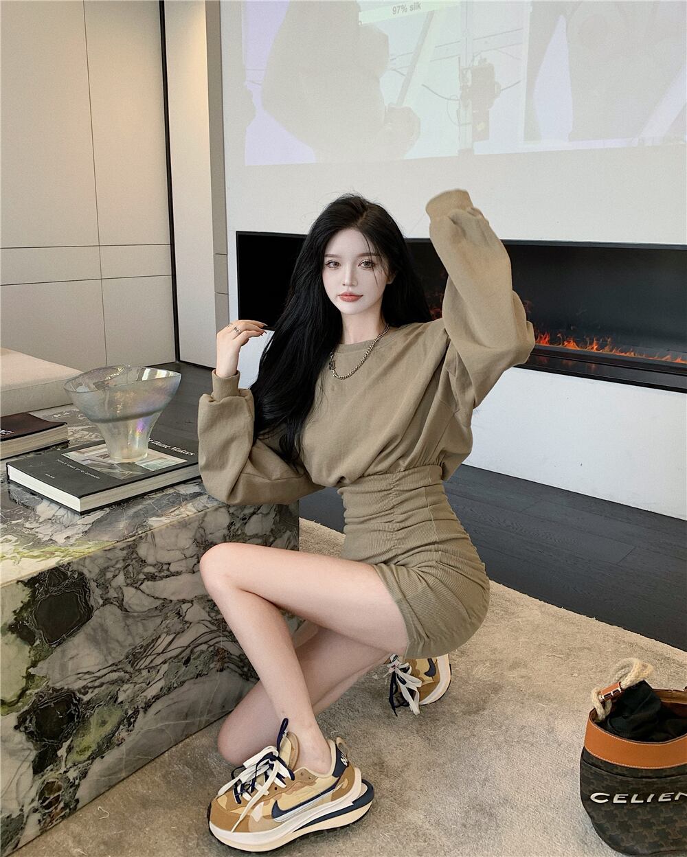 スタイルスタンダードウェストスカート オータムドレス ロング レトロ 秋物 ステッチ ガールズファッション81948516462