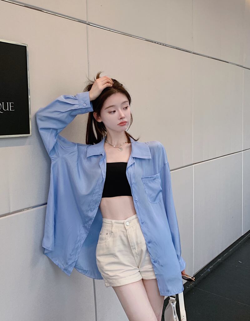 ブルーシャツ オータムスタンダードルーズトップス ロング レトロ 大人ガーリー スウィート キュート カジュアル 秋物 ガールズファッション76784422132