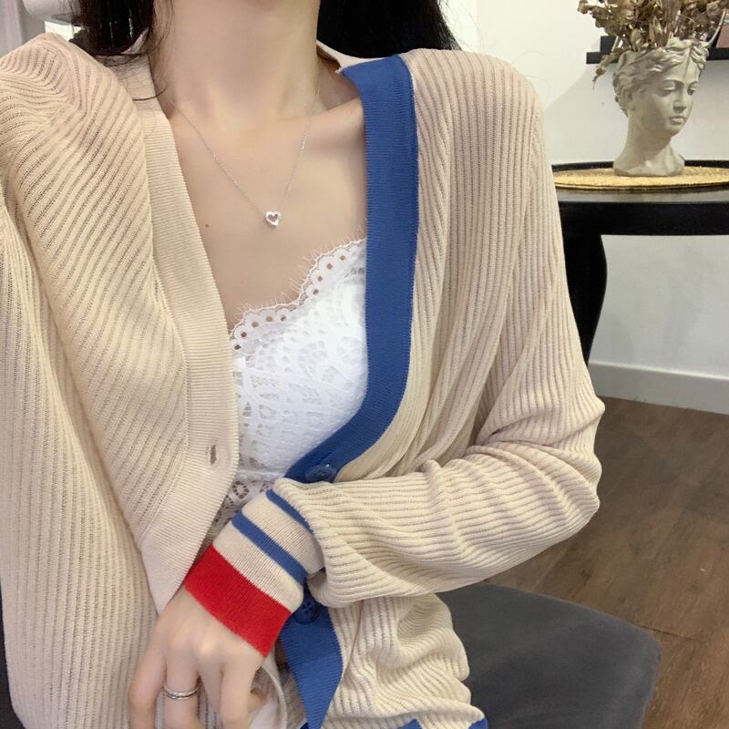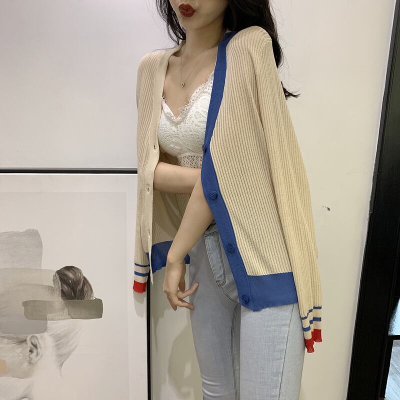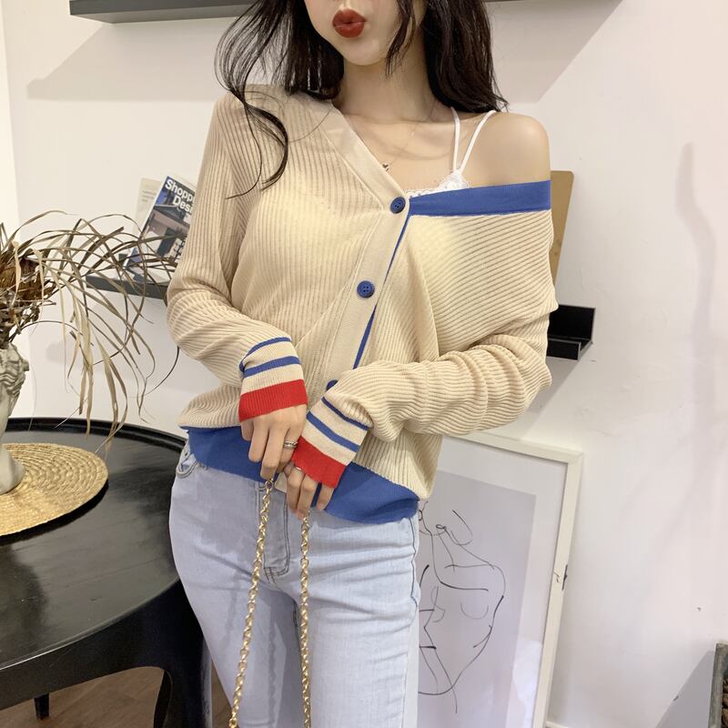 ニットセーター オータムカラーVネックカーディガンジャケット 薄手シャツ 秋物 ステッチ ガールズファッション12532684891