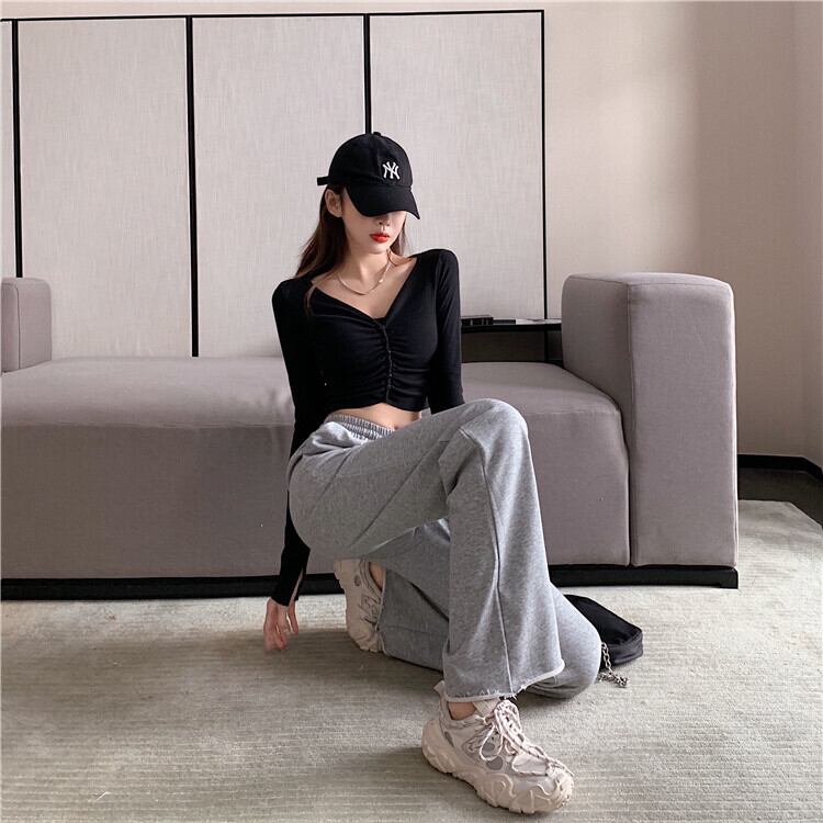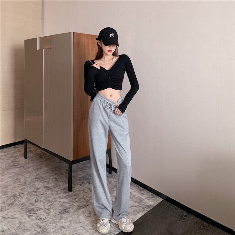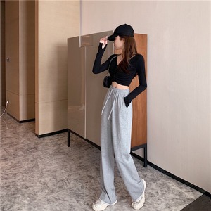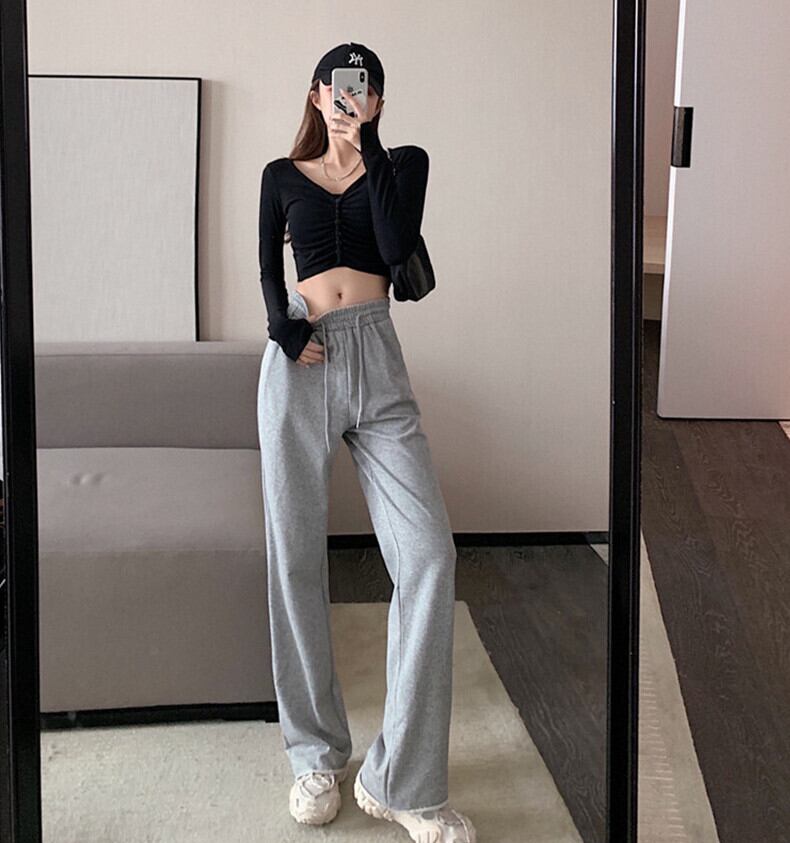 パンツ オータムスタイルグレーギャザーストレッチハイウェストカジュアルルーズ エラスティック 伸縮 秋物 ガールズファッション12041589645