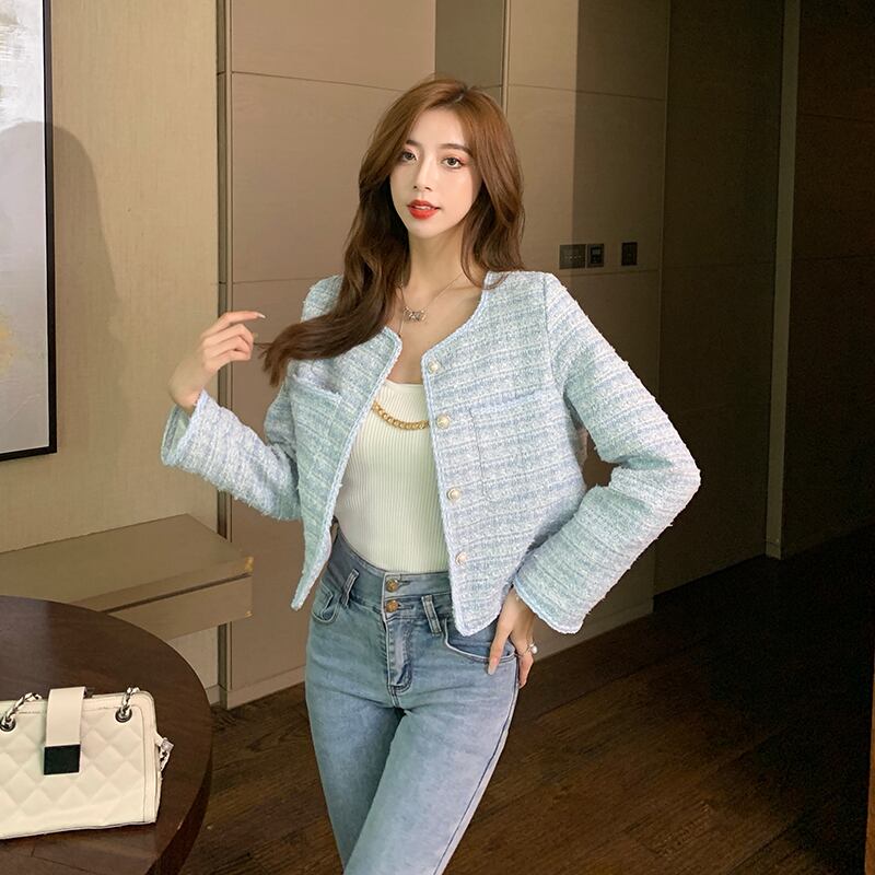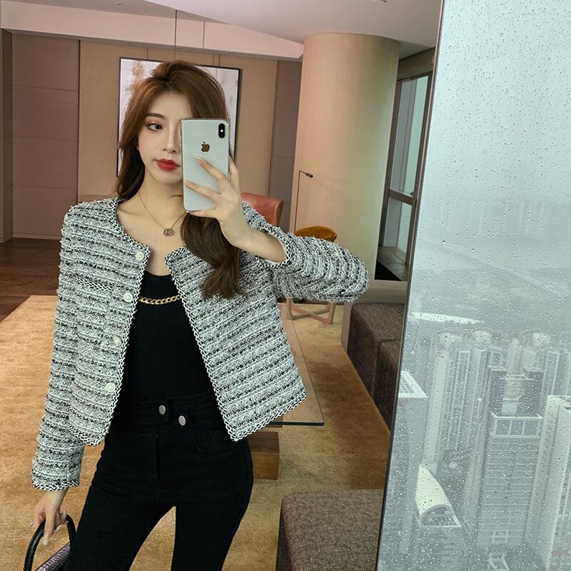 ルーズツィードショートジャケット オータムスタンダードカーディガントップス ロング レトロ エレガント 秋物 ガールズファッション12545489425