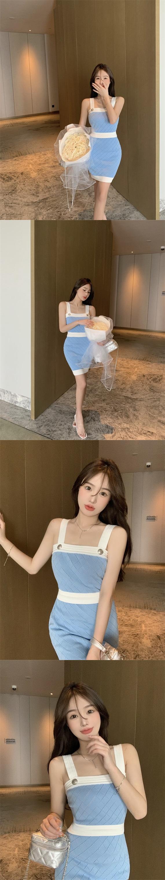ウェストニットドレス サマースタンダードカラースカート レトロ 夏物 ガールズファッション85052734806