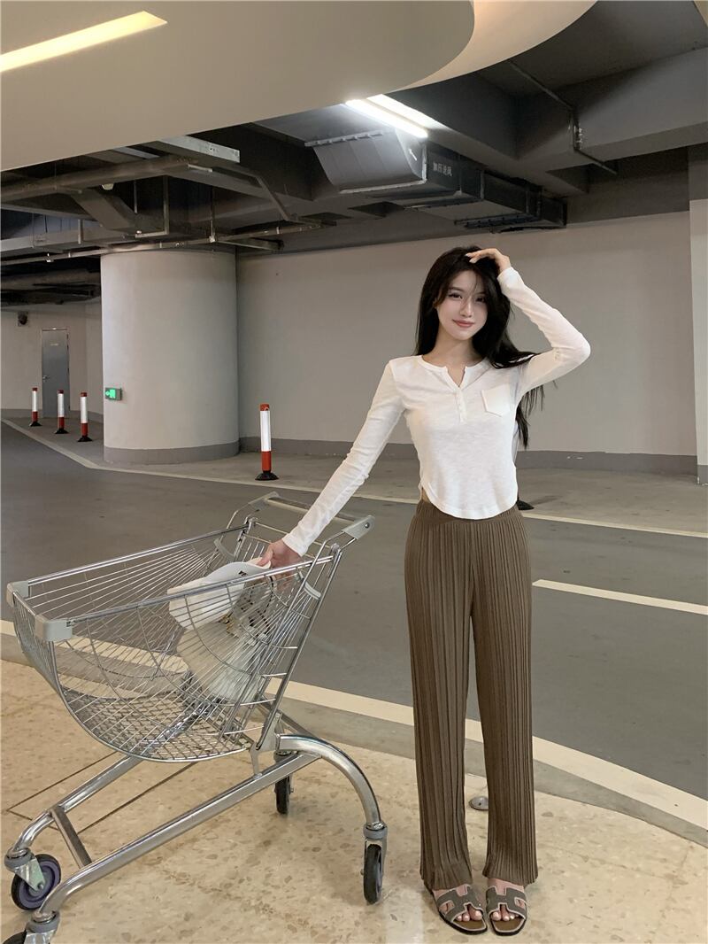 Vネックニットトップス レディースハイウェストプリーツパンツ レッドカジュアルサマー ロング 夏物 ガールズファッション31497891193