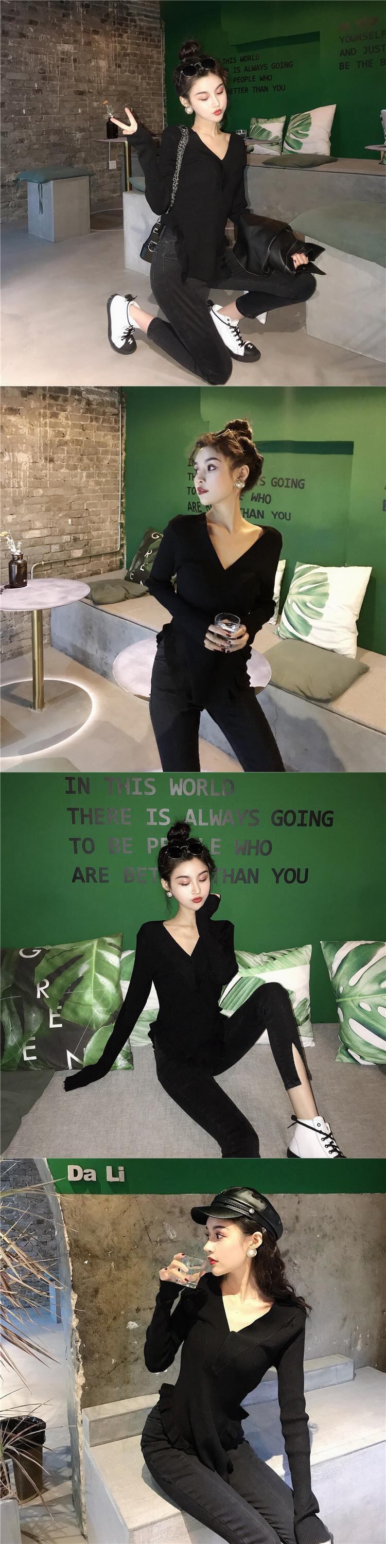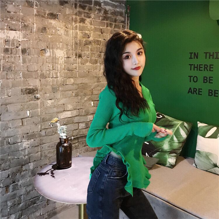 ニットセーター オータムスタイルVネックTシャツ ロング 秋物 ガールズファッション64466483061