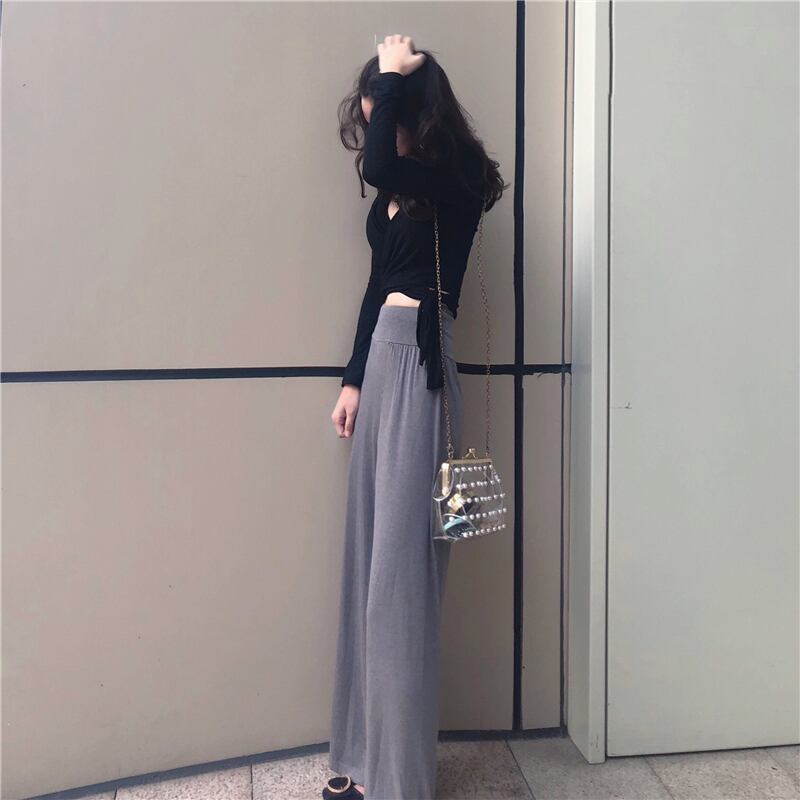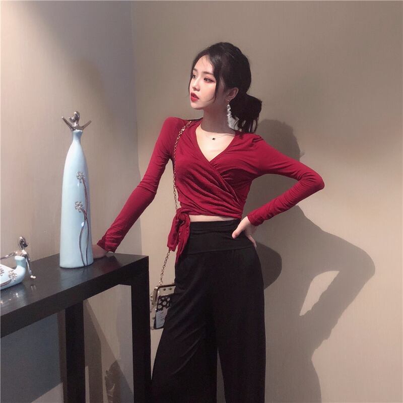 オータムVネックストラップ ショートTシャツ ルーズハイウェストパンツ ロング 秋物 ガールズファッション35397539051