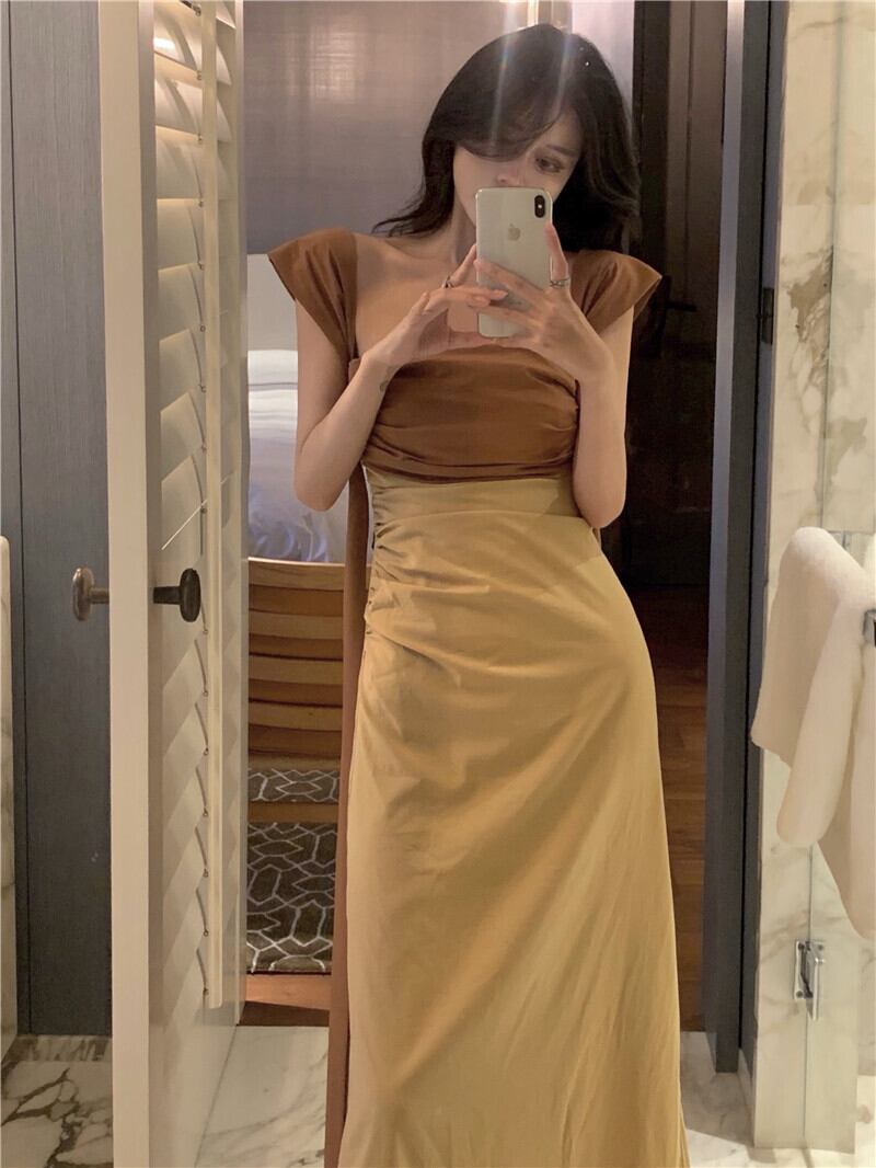ドレス サマースカート スタンダードカラーウェスト レトロ 夏物 ガールズファッション54537384306
