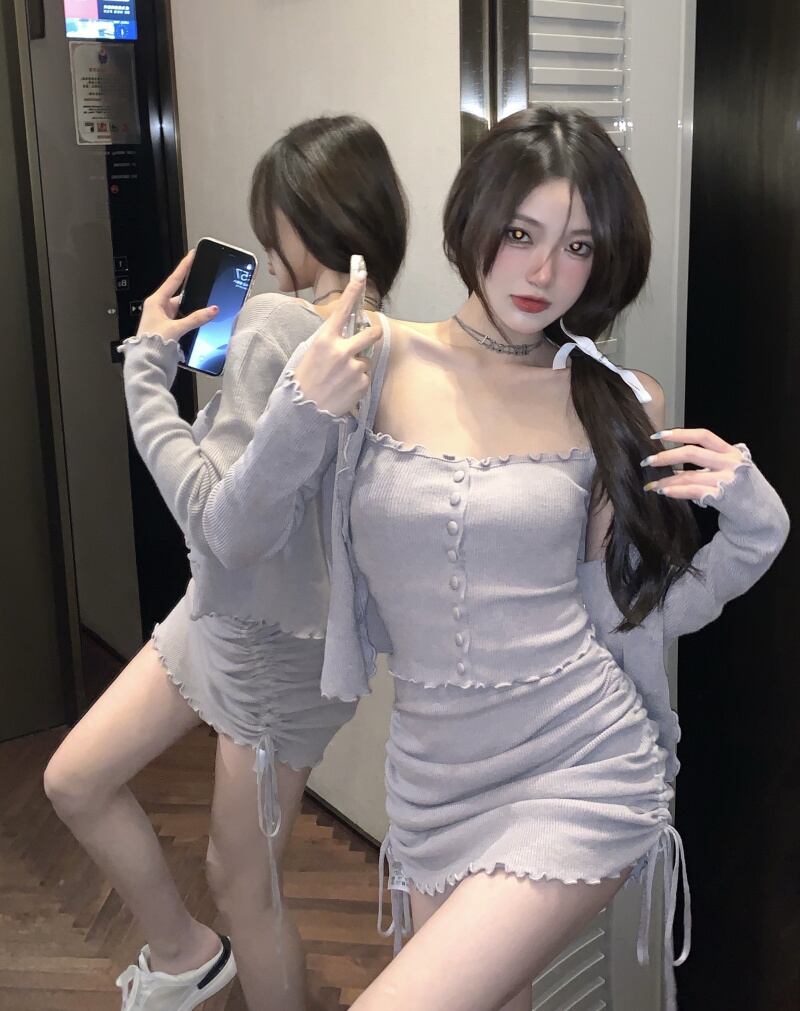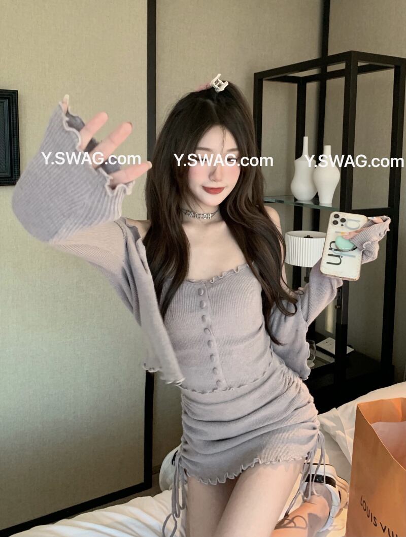 スリムニットカーディガン薄手セット オータムギャザープリーツスカート レディース 秋物 ガールズファッション60057736675