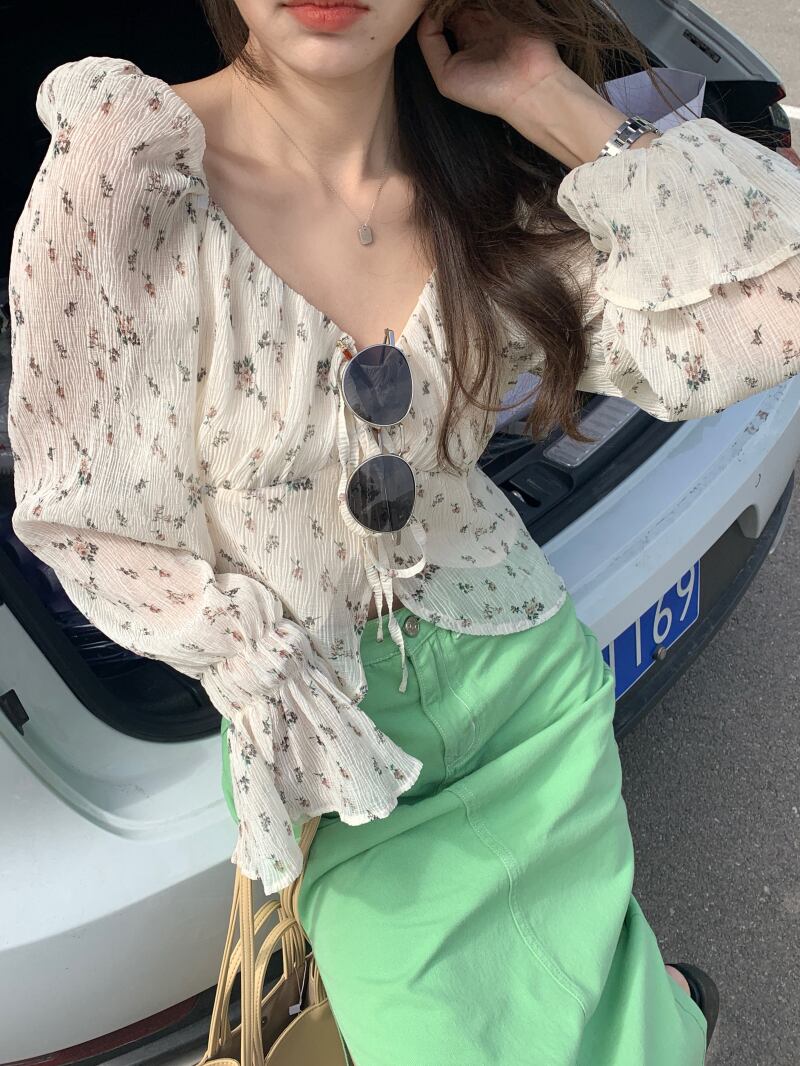 フローラルシャツ オータムブラウス シフォン 大人ガーリー スウィート キュート カジュアル 秋物 花柄 ガールズファッション72513383407