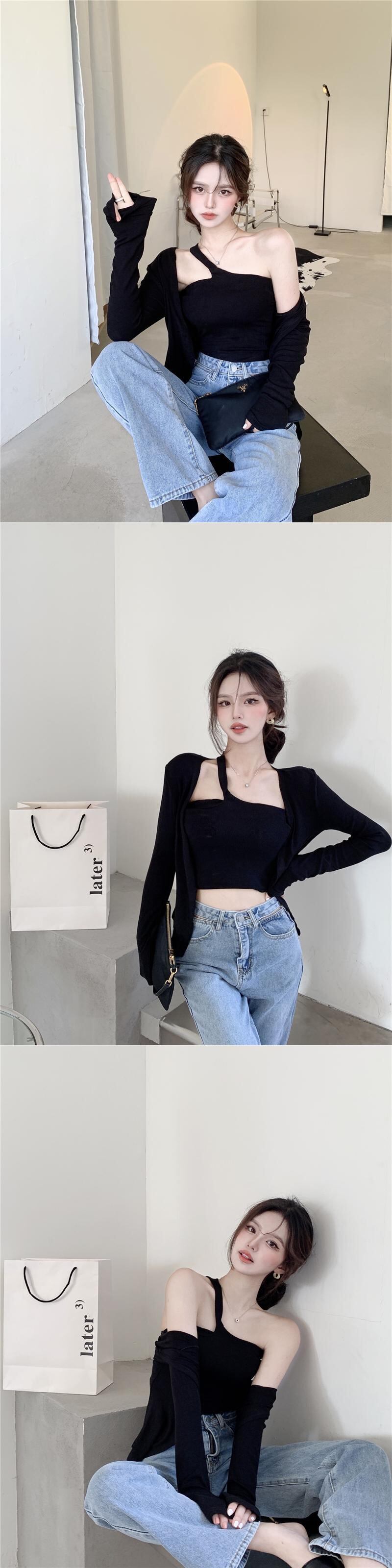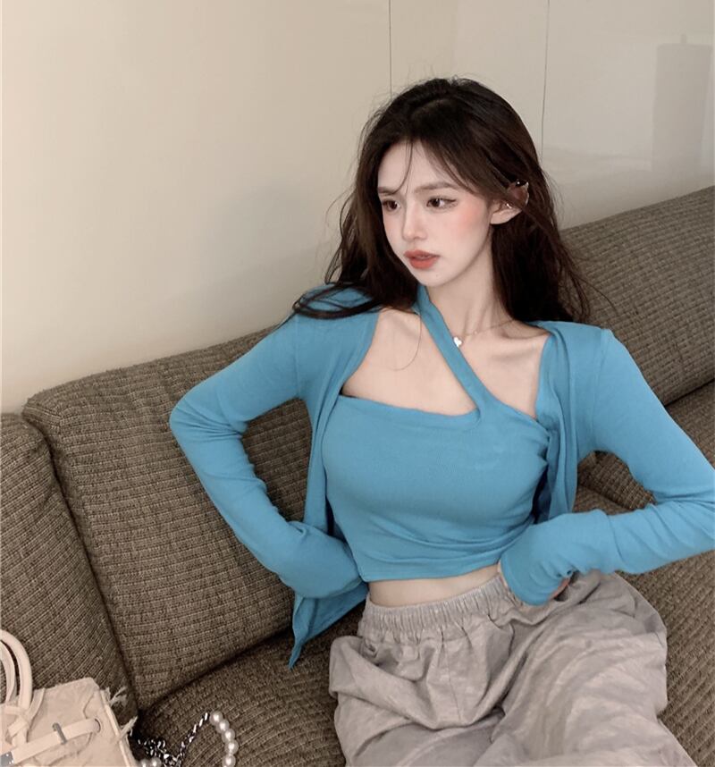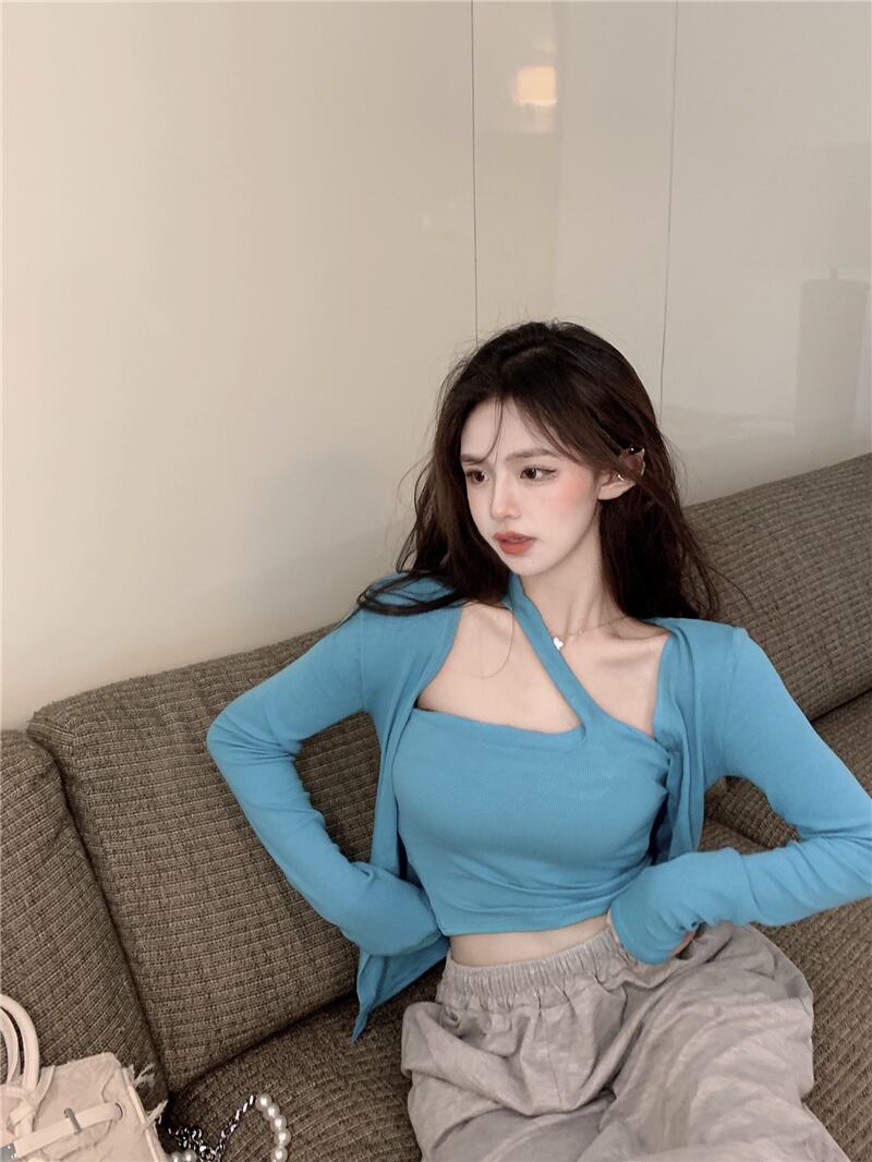 薄手レッドオータムニットカーディガンシャツ ロング ストリート 秋物 ガールズファッション99359087028