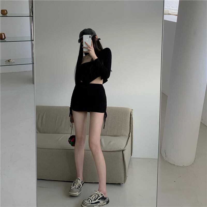 フードカーディガンレディーストライアングルトップス ギャザースカート サマー ストリート 夏物 ガールズファッション28360101476
