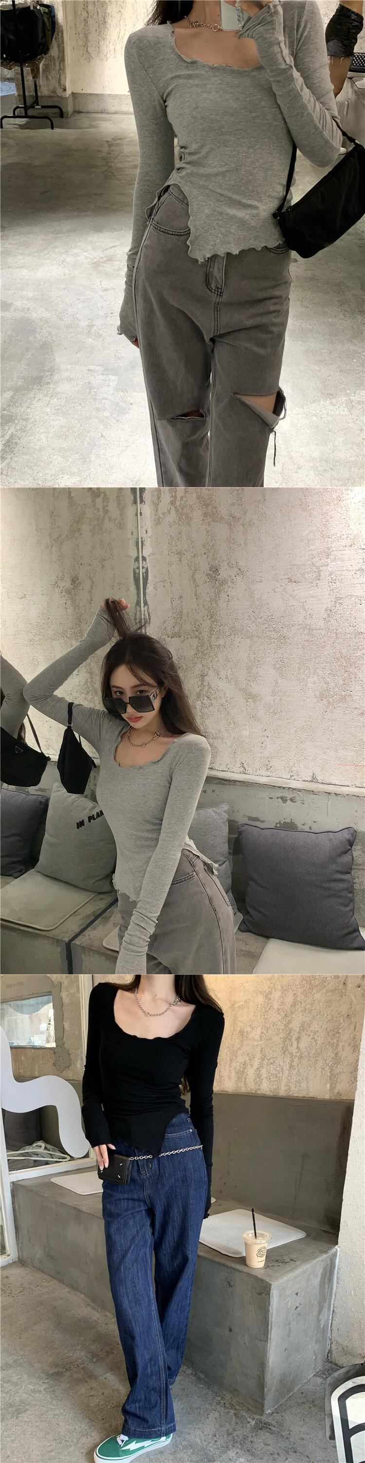 オータムスリムニットシャツ ショートラウンドネックTシャツ トップス ロング 秋物 Oネック ガールズファッション30425028050