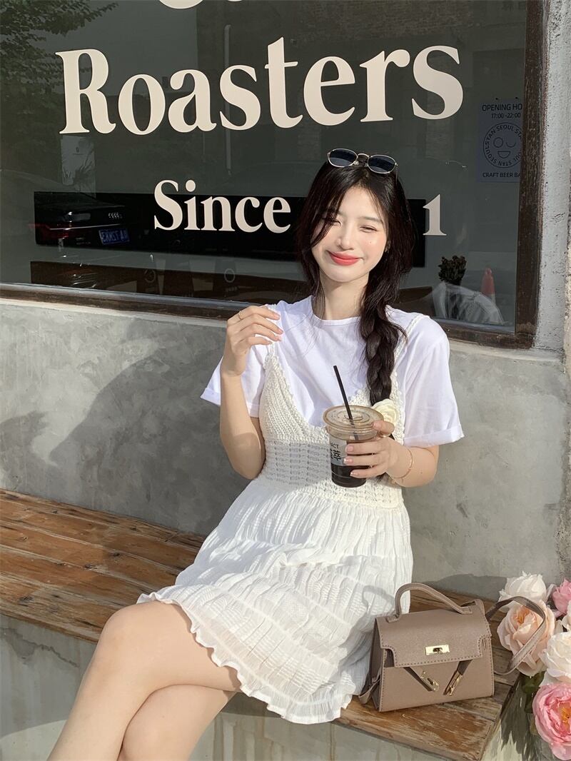 サマーホワイトTシャツ 薄手レースドレス 夏物 ガールズファッション66861951536