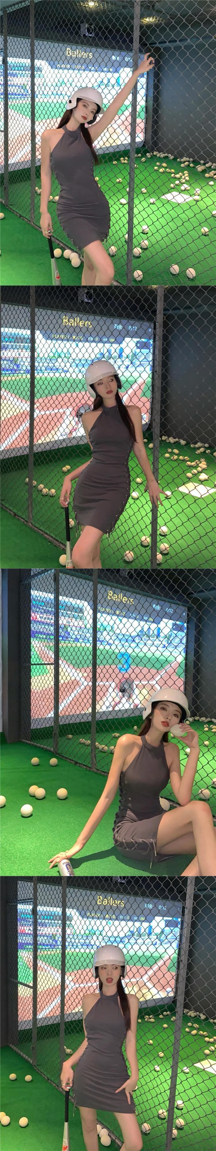 ショートスカート サマー薄手バックレスウェストノースリーブドレス レース エラスティック 伸縮 夏物 レースアップ ピュア ガールズファッション69421252365