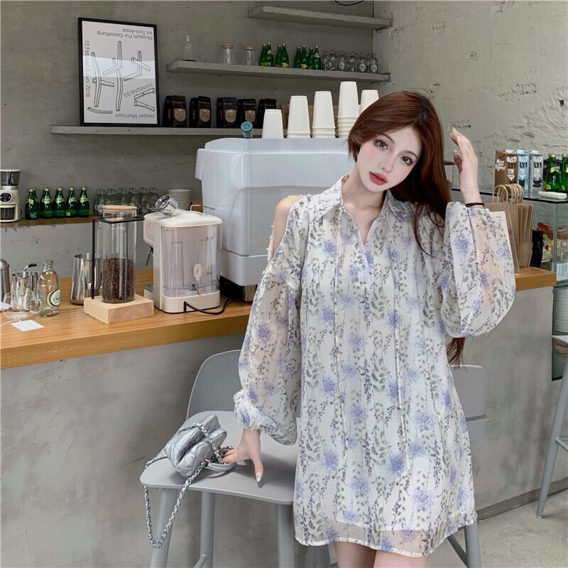 フローラルドレス サマーシャツ スカート 大人ガーリー スウィート キュート カジュアル 夏物 花柄 オフショルダー ガールズファッション93416175431