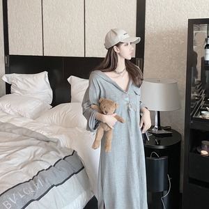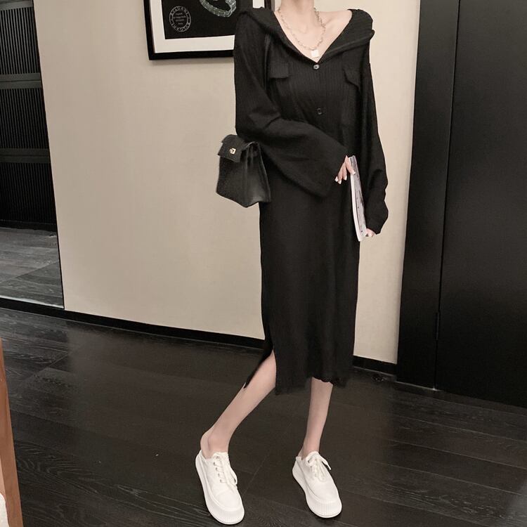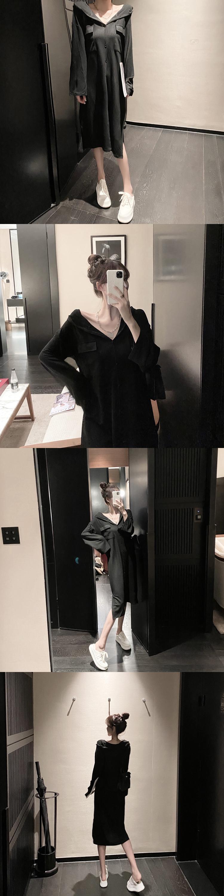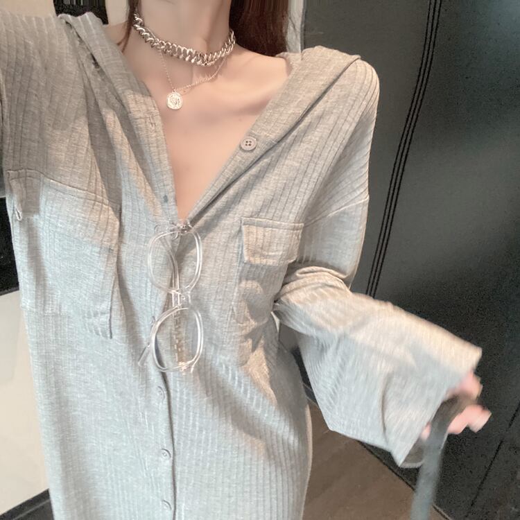 グレーフードセーター ドレス オータムルーズ ロング 秋物 ガールズファッション43720495071