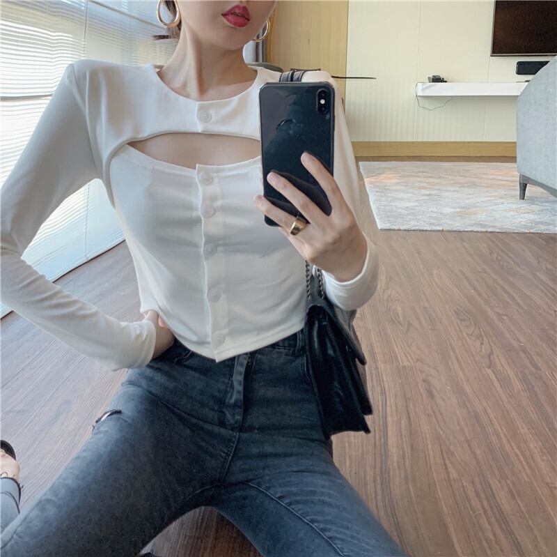 ホワイトTシャツ オータムスリムトップス ロング 秋物 ガールズファッション49367833692