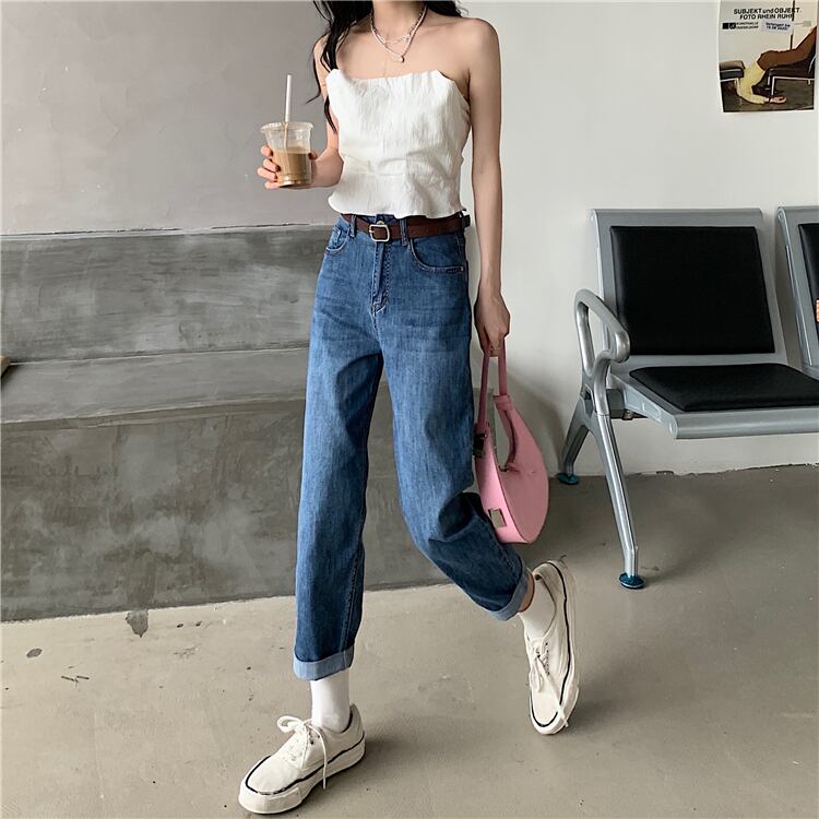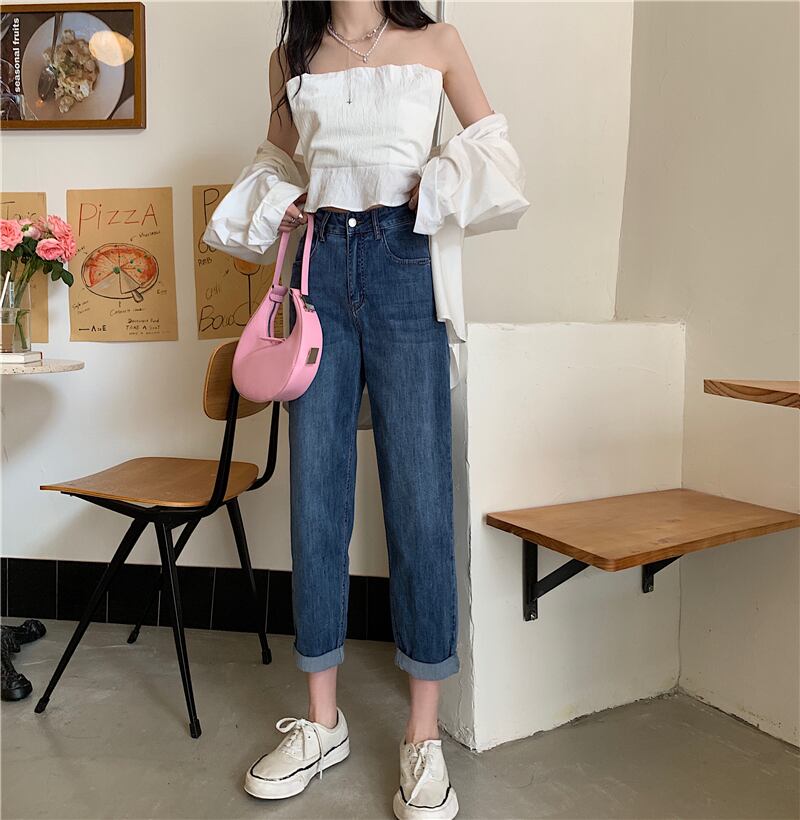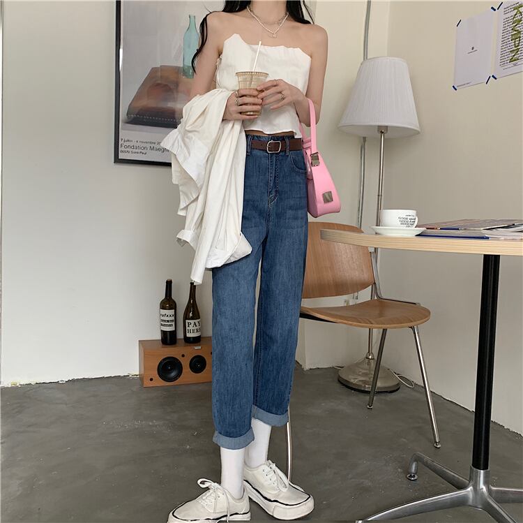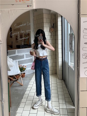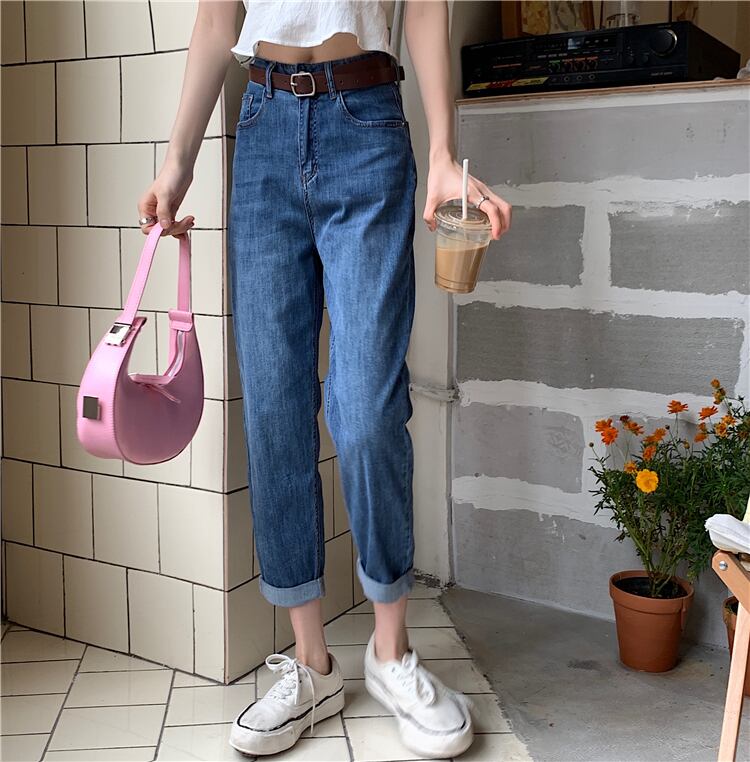 ハイウェストジーンズ オータムルーズカジュアルパンツ 秋物 ガールズファッション94883043792