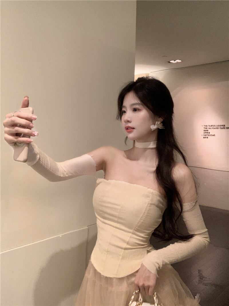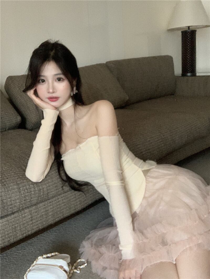 色:ベージュトップス(袖は取り外し可能),ブラックトップ(袖は取り外し可能),ベージュのスカート,黒スカート