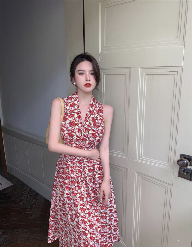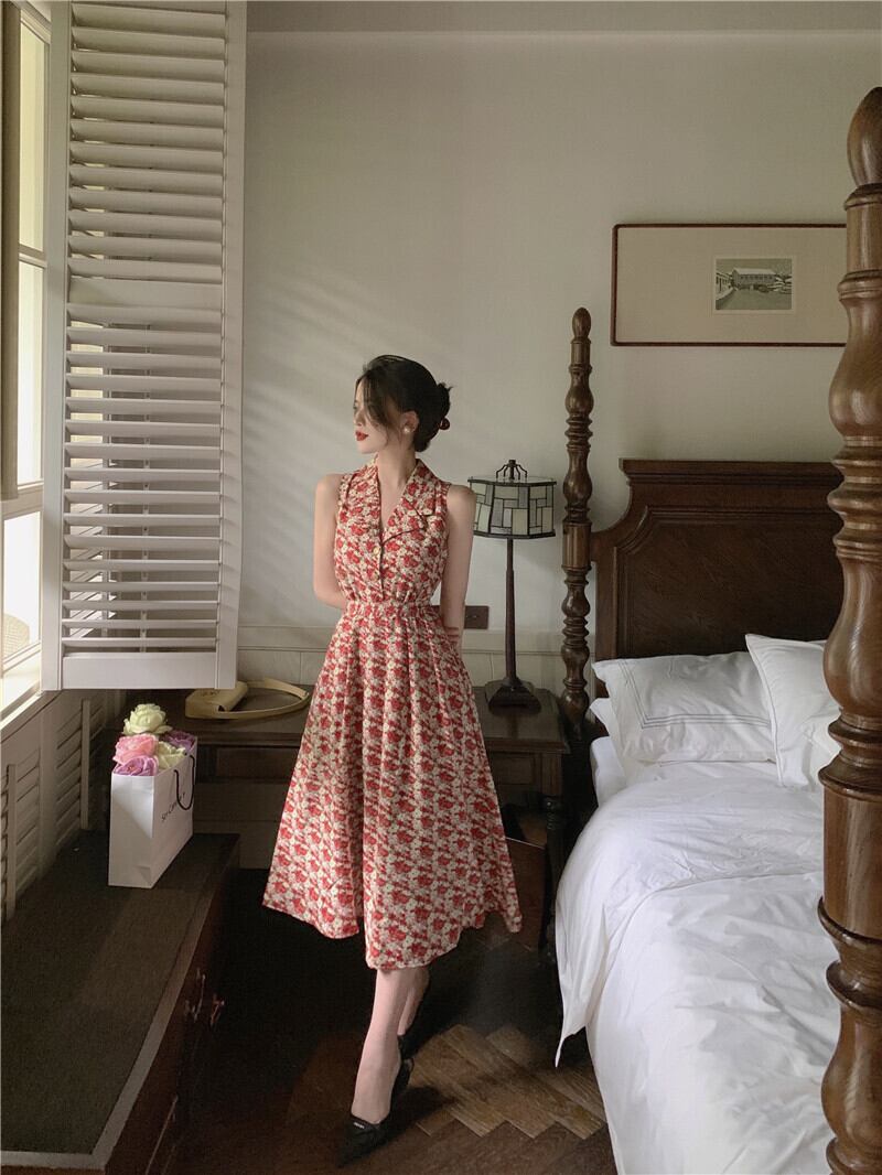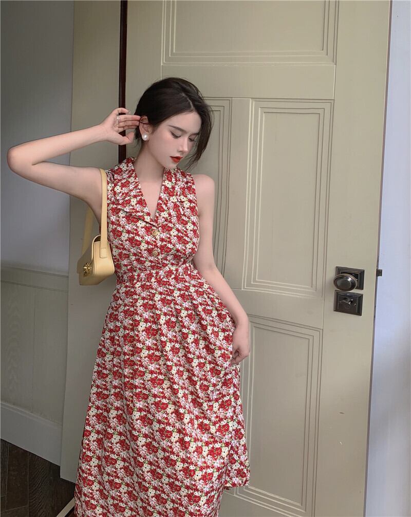 スタイルスタンダードシフォンフローラルドレス サマーウェストスカート レトロ 夏物 花柄 ガールズファッション65150162956