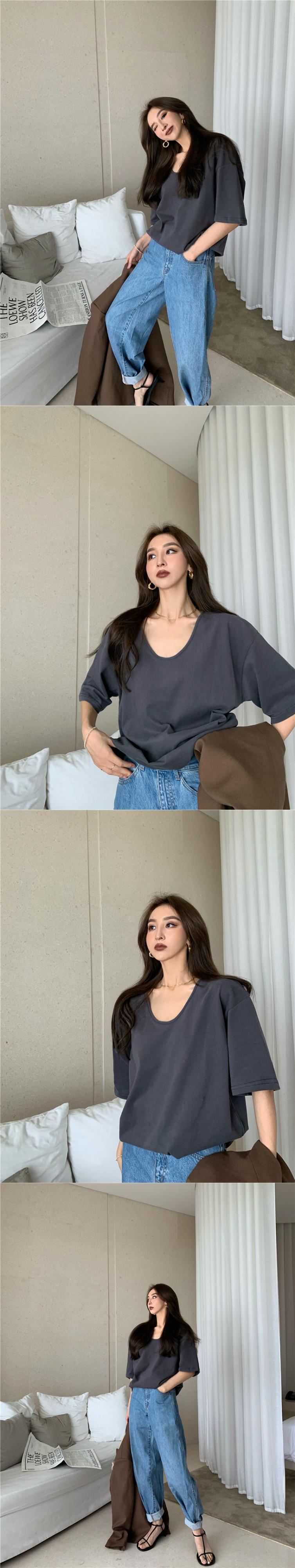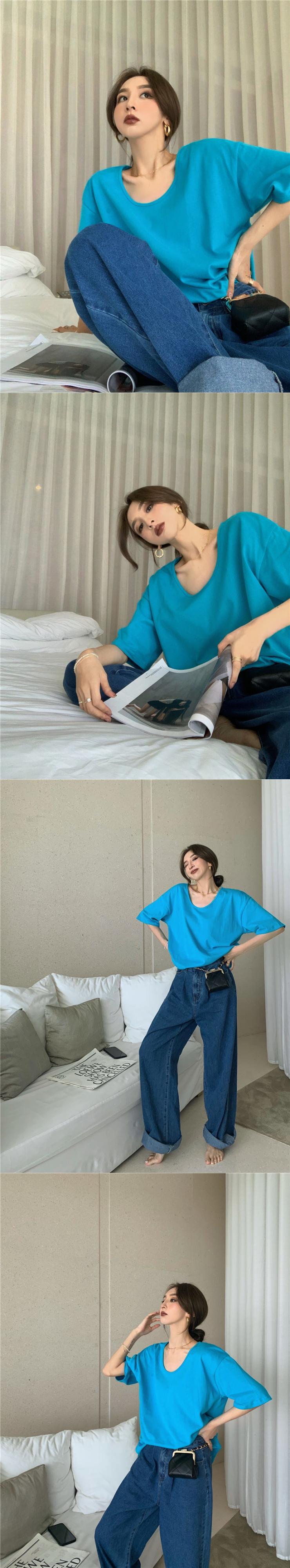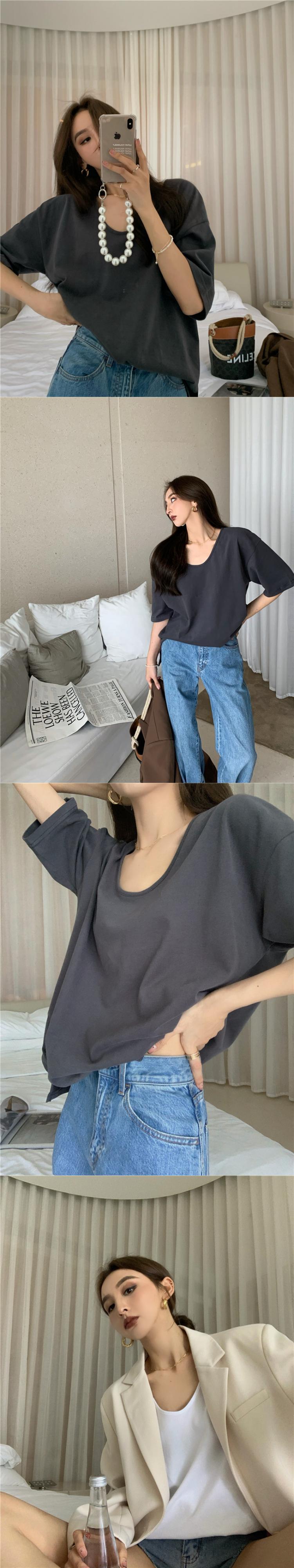スタンダードVネックルーズソリッド カラーTシャツ サマー薄手ホワイトカジュアルトップス レトロ 夏物 ソリッドカラー ガールズファッション49561420062