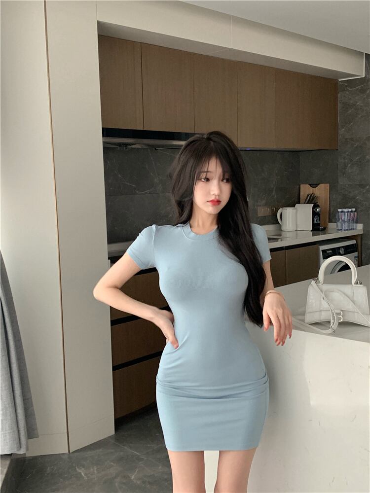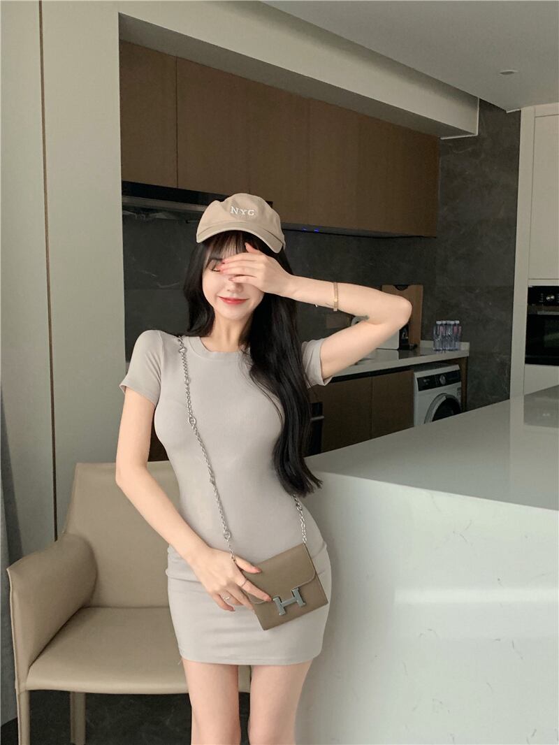 スカート サマーソリッド カラーハイウェストウェストスリムショートドレス 夏物 ソリッドカラー ガールズファッション31866548744