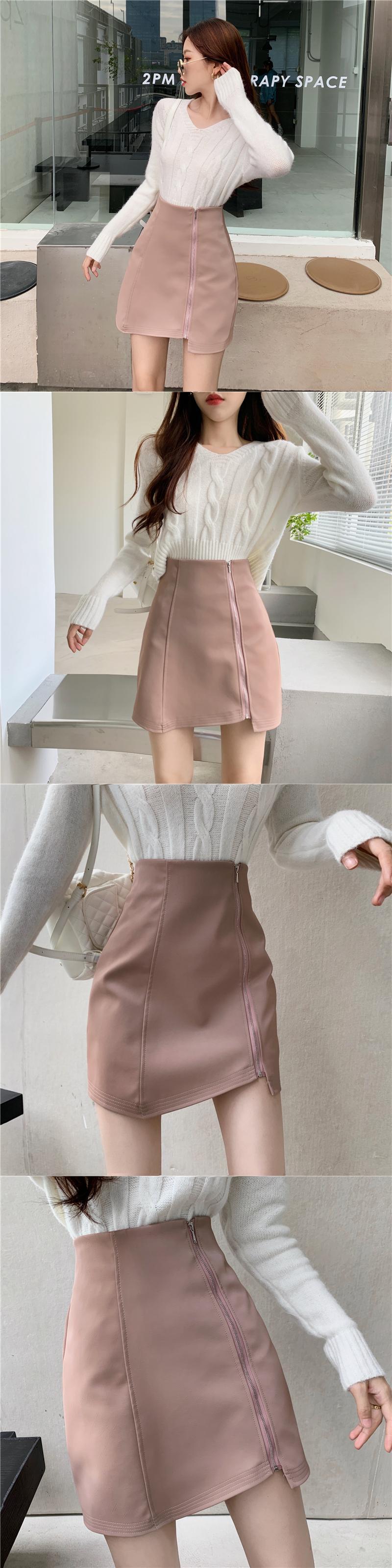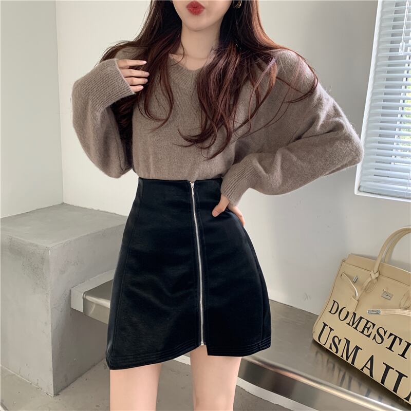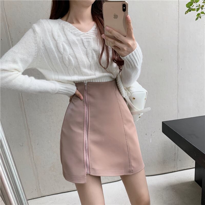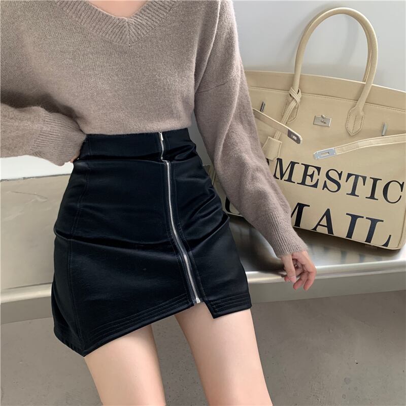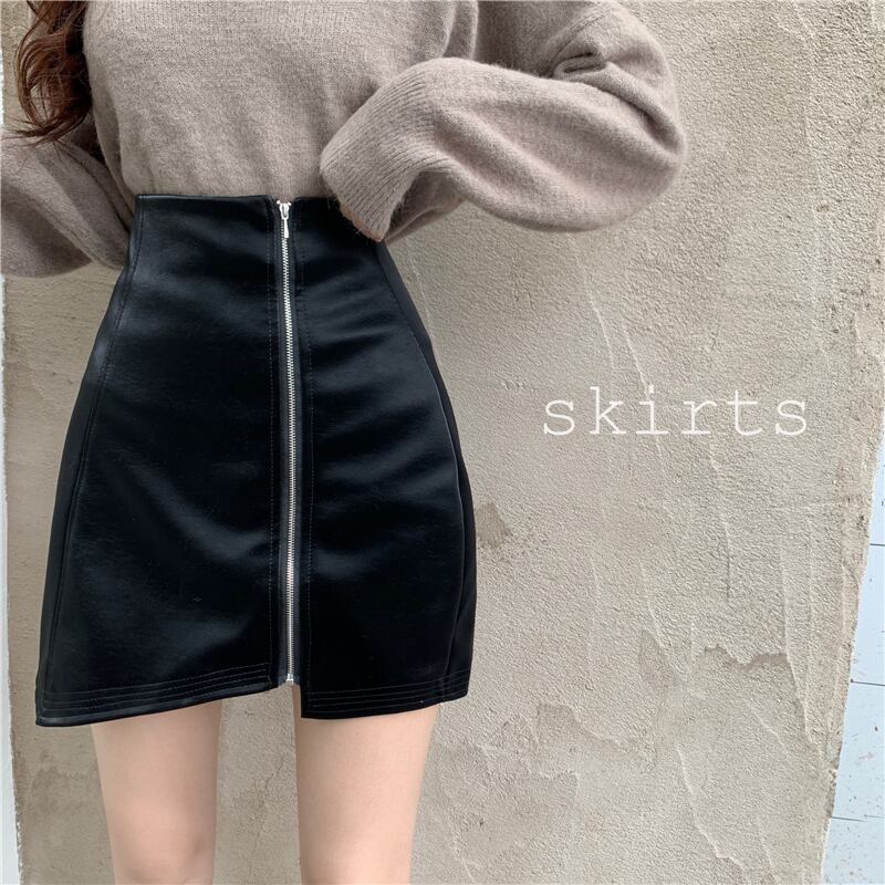スリムスカート オータムスタイルハイウェストウェストジッパーレザーAライン 秋物 ガールズファッション31082292317