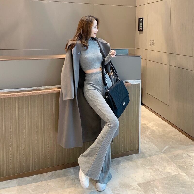 色:グレートップ,ブラックトップ,灰色のベルボトム,ブラックベルボトム