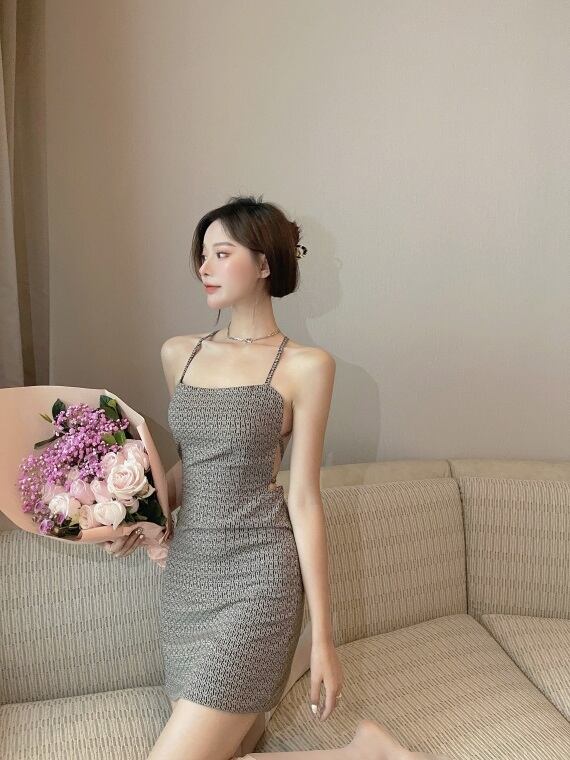 スタンダードホルター格子柄ドレス サマースタイルウェストスカート レトロ 夏物 ガールズファッション64474254469