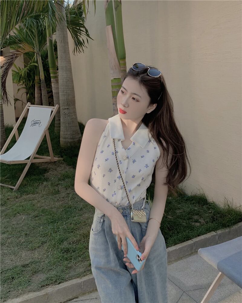 スタンダードホルターニットサマートップス レトロ 大人ガーリー スウィート キュート カジュアル 夏物 ガールズファッション57795878392