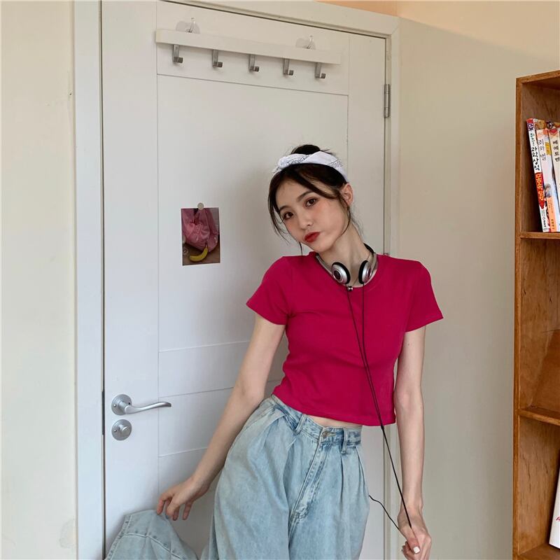 オータムソリッド カラーベーシックTシャツ シャツ トップス レディーススタンダードラウンドネックプルオーバー レトロ 秋物 Oネック ソリッドカラー ガールズファッション96154628720