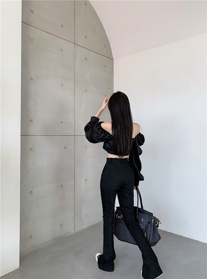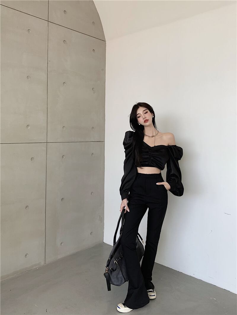 スリーブトップス オータムハイウェスト薄手パンツ ストリート 秋物 ピュア ガールズファッション50681524517