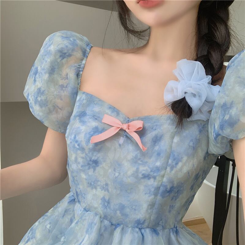 ドレス サマースリーブウェストフローラルスカート 大人ガーリー スウィート キュート カジュアル ふわふわ 夏物 花柄 ガールズファッション53995829542