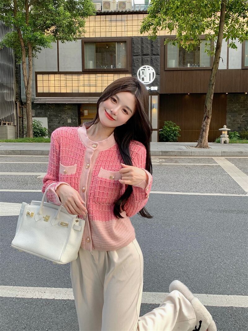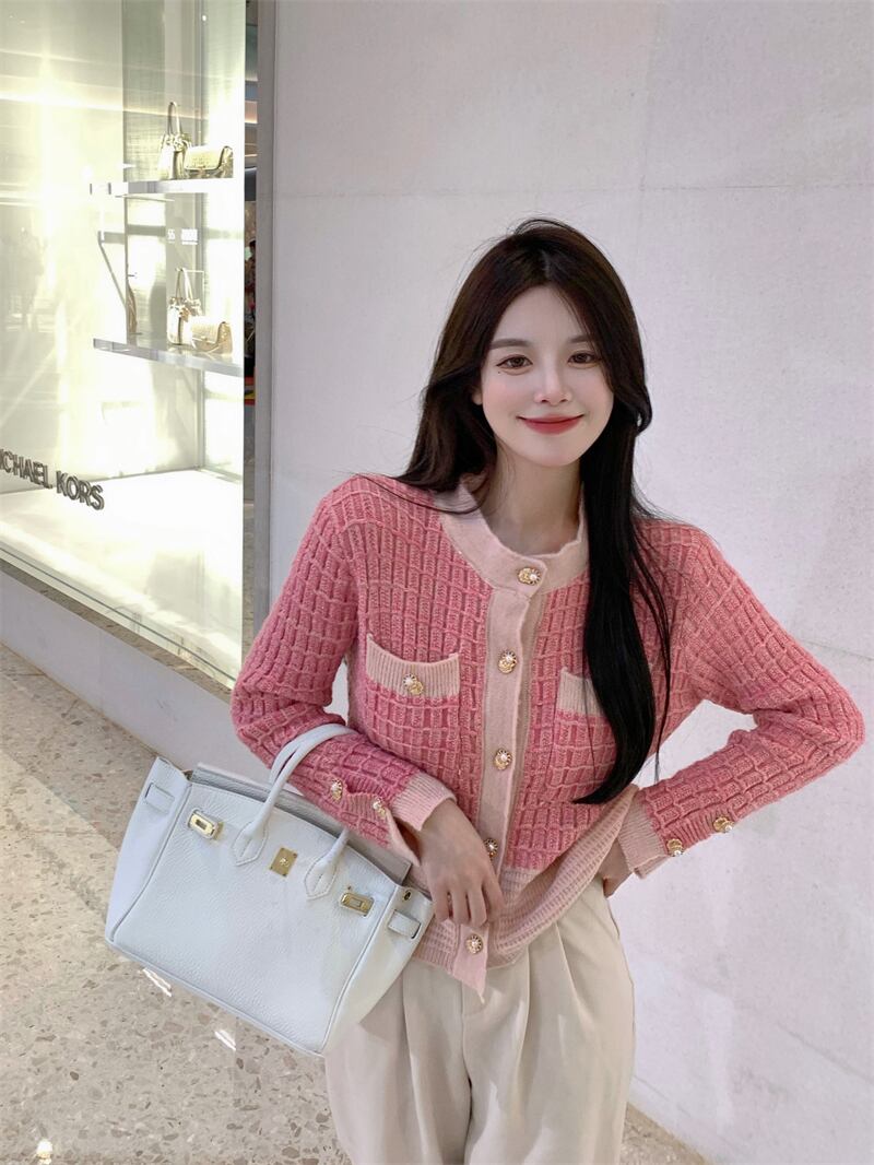 スタンダードセーター ニットカーディガンジャケット オータムクロップドトップス ピンク レトロ 大人ガーリー スウィート キュート カジュアル 秋物 ガールズファッション93940341392