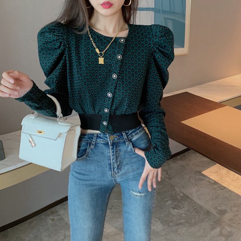 スタイルスタンダードフローラルシャツ オータムウェストショートスリーブトップス レトロ 秋物 花柄 ガールズファッション80668185131