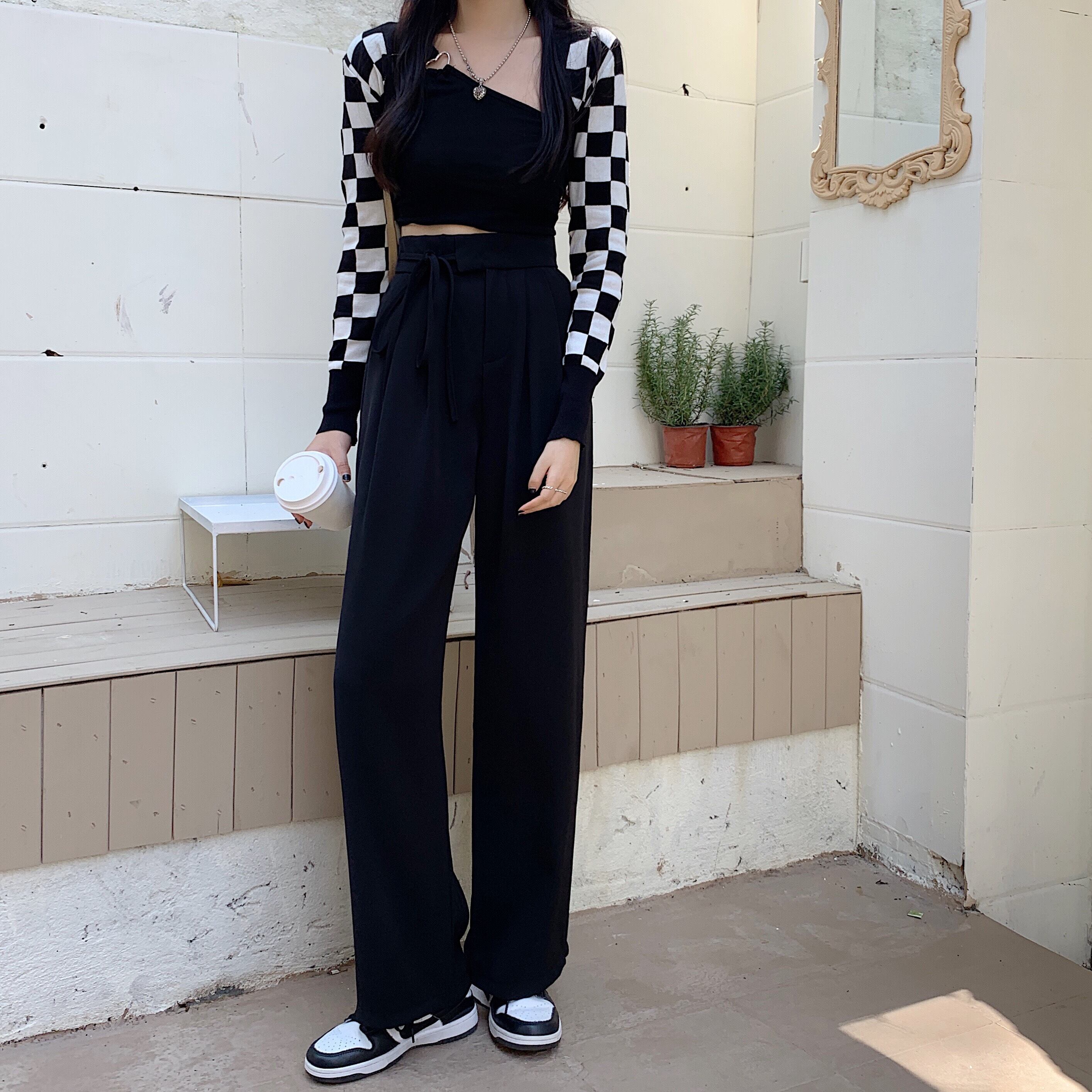 ハイウェスト薄手オータムブラックカジュアル レース 秋物 レースアップ ガールズファッション22004074753