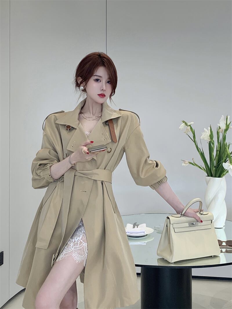 スタンダードスタイルダブルブレストジャケット オータムウェストベルト レトロ 秋物 ハーネス ガールズファッション69570478925