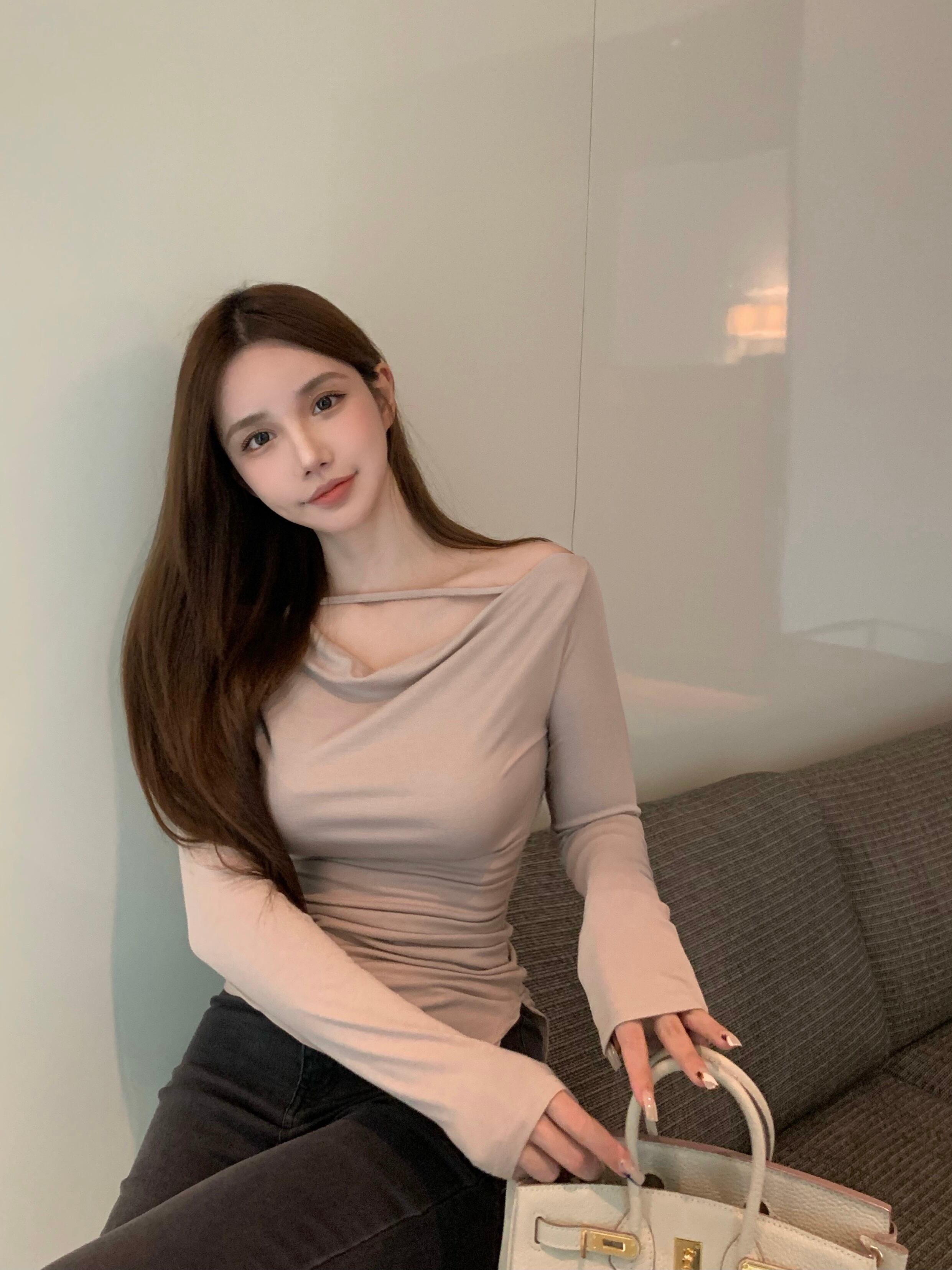 Tシャツ オータムウィンターソリッド カラードレス スキニートップス ロング 秋物 冬物 ソリッドカラー ガールズファッション84351751385