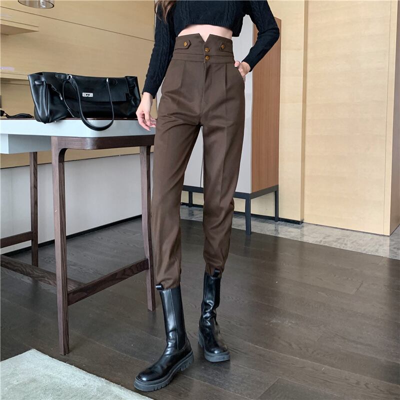 パンツ オータムウィンターハイウェスト薄手ブラックカジュアルスタンダード レトロ 秋物 冬物 ガールズファッション75076575591
