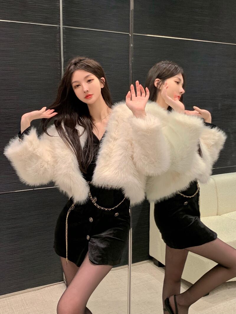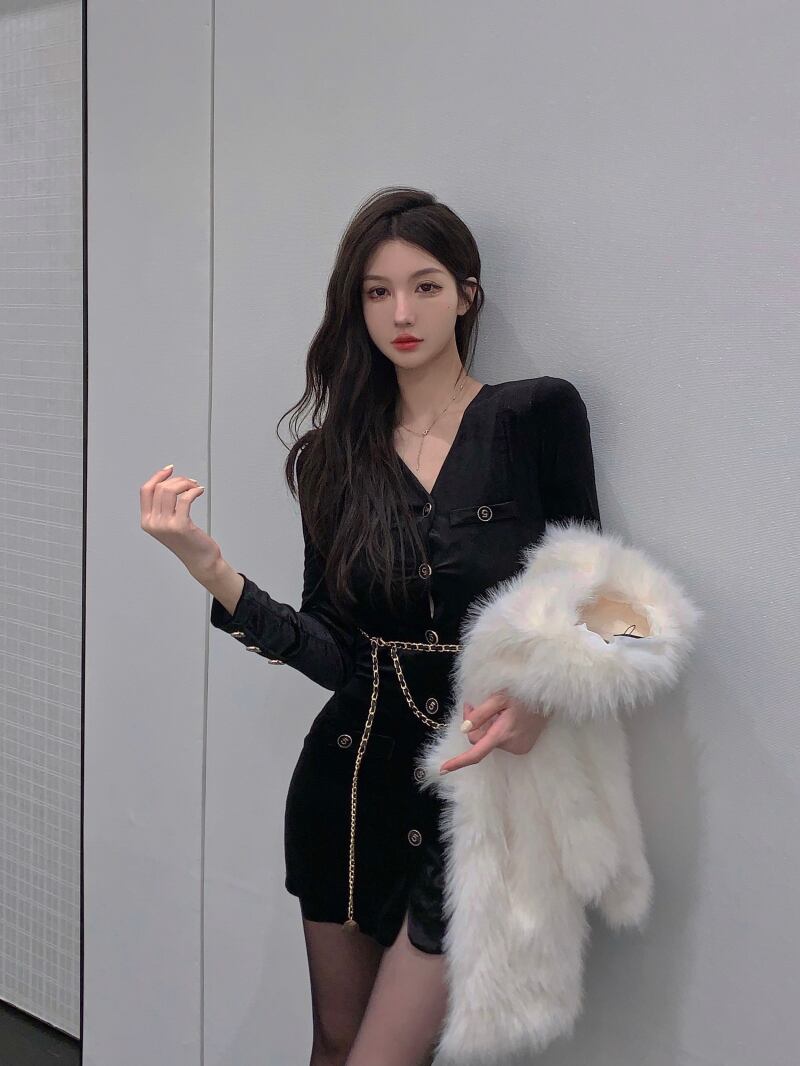 オータムウィンターウェストVネックAラインドレス ルーズジャケット ロング 秋物 冬物 ガールズファッション65517177701