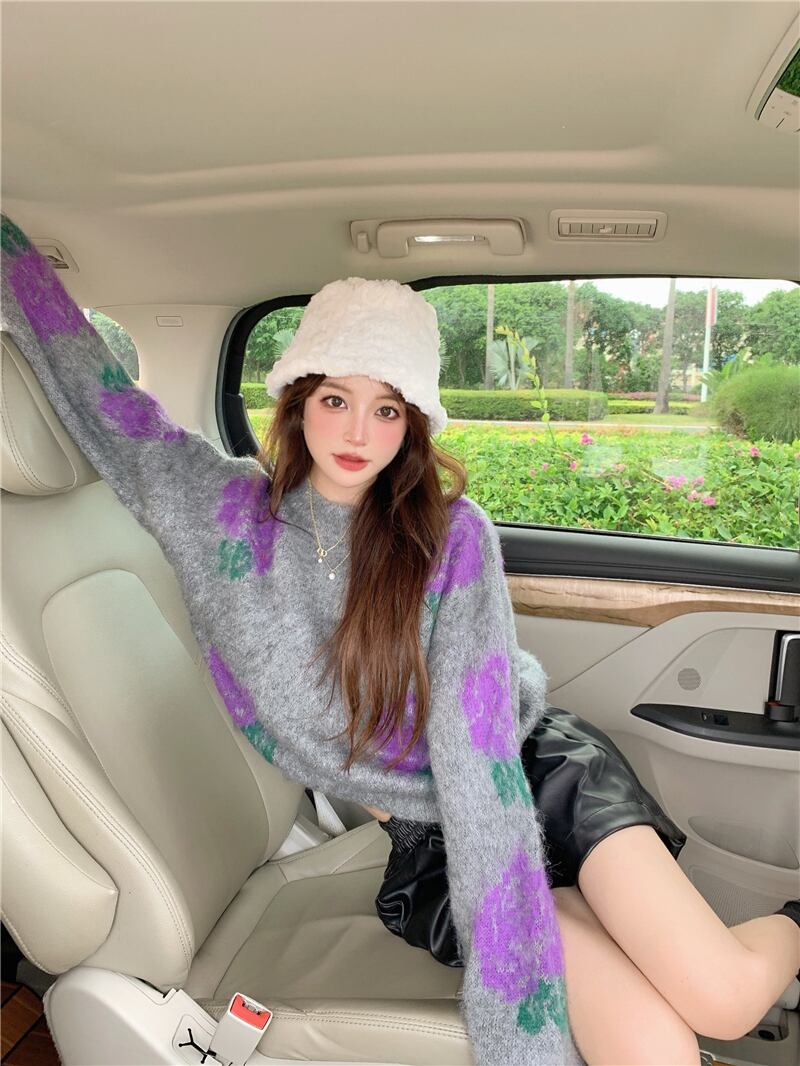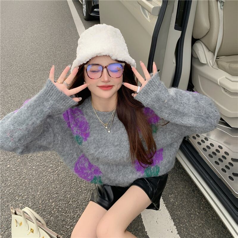 スタンダードジャカードラウンドネックセーター オータムウィンタールーズプルオーバー トップス ロング レトロ 大人ガーリー スウィート キュート カジュアル 秋物 冬物 Oネック ガールズファッション52231413928
