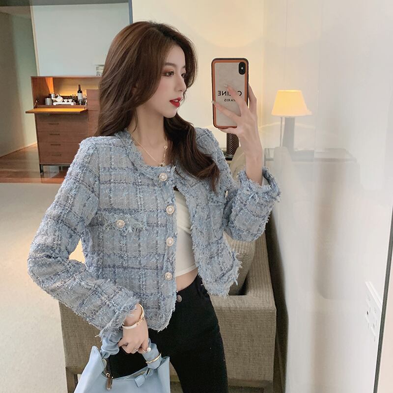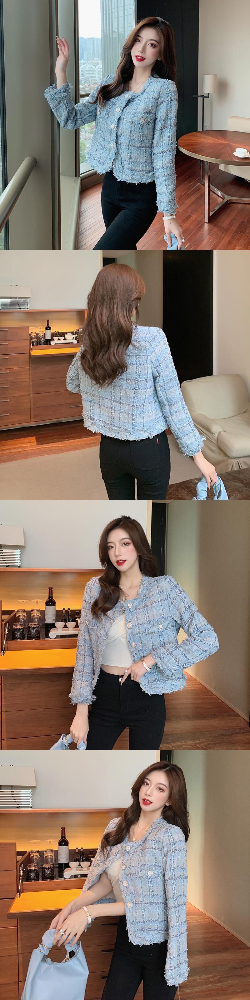 オータムウィンタールーズショートツィードジャケット ラウンドネックカーディガン ロング 秋物 冬物 Oネック ガールズファッション59042342384