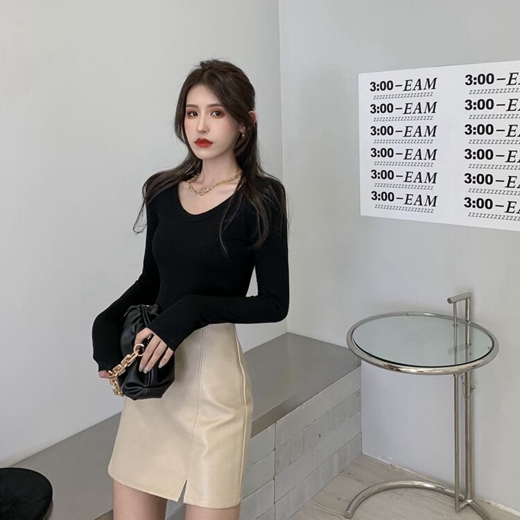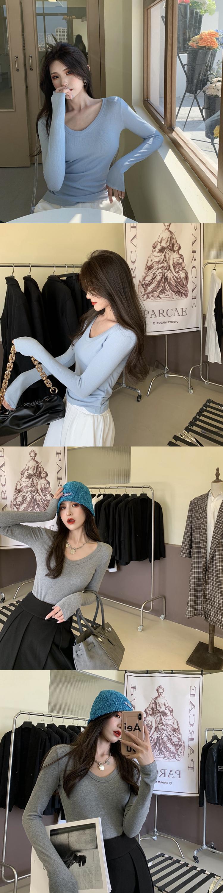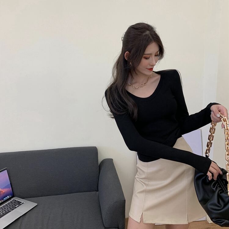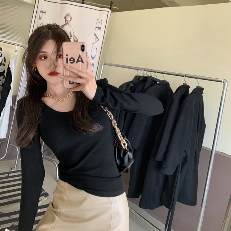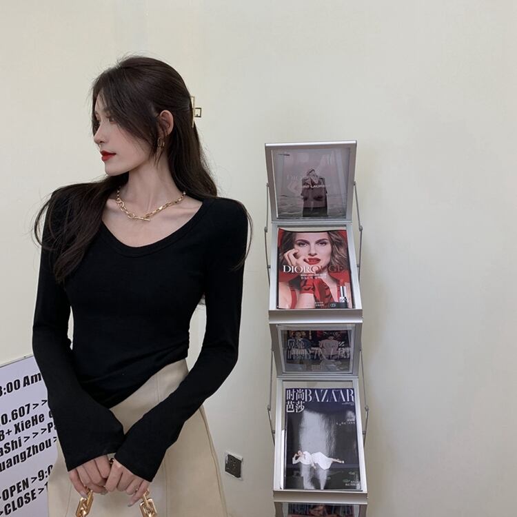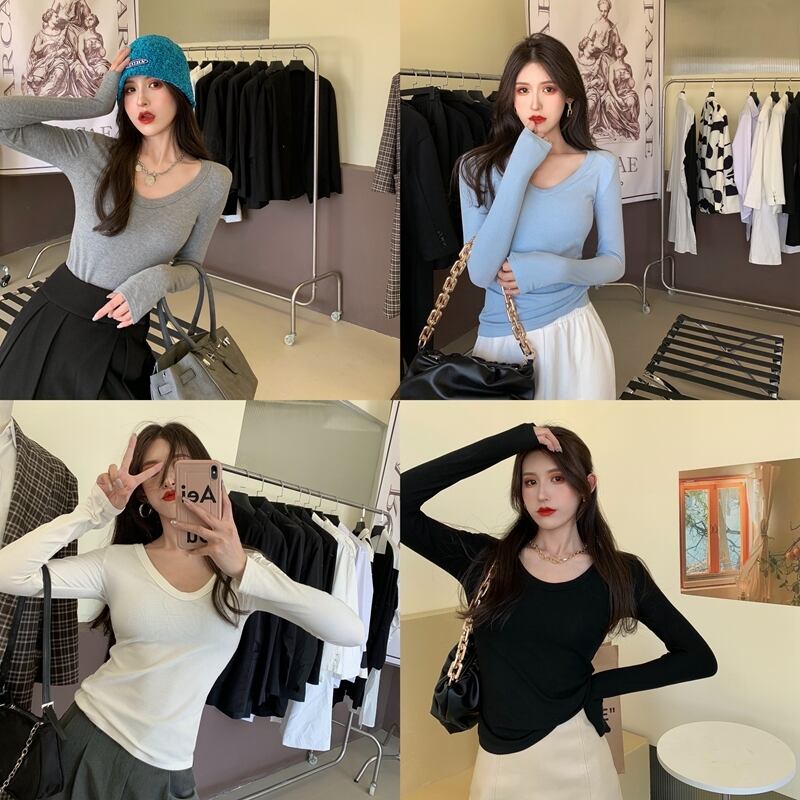 Vネックシャツ ショート ロング ウィンター 冬物 Tシャツ ソリッドカラー ガールズファッション14095438598