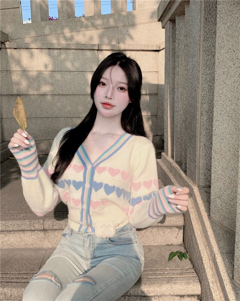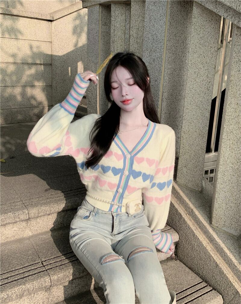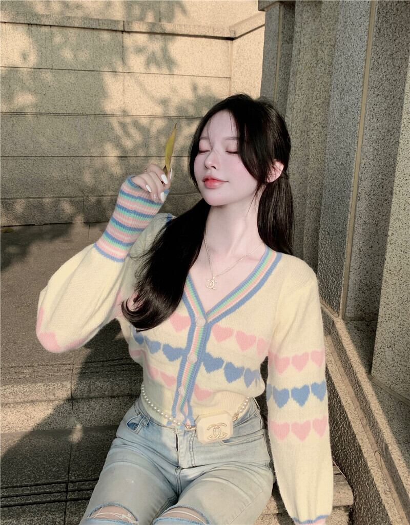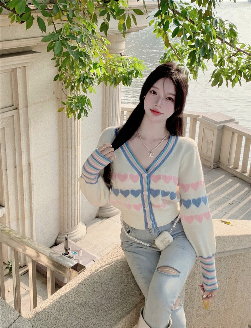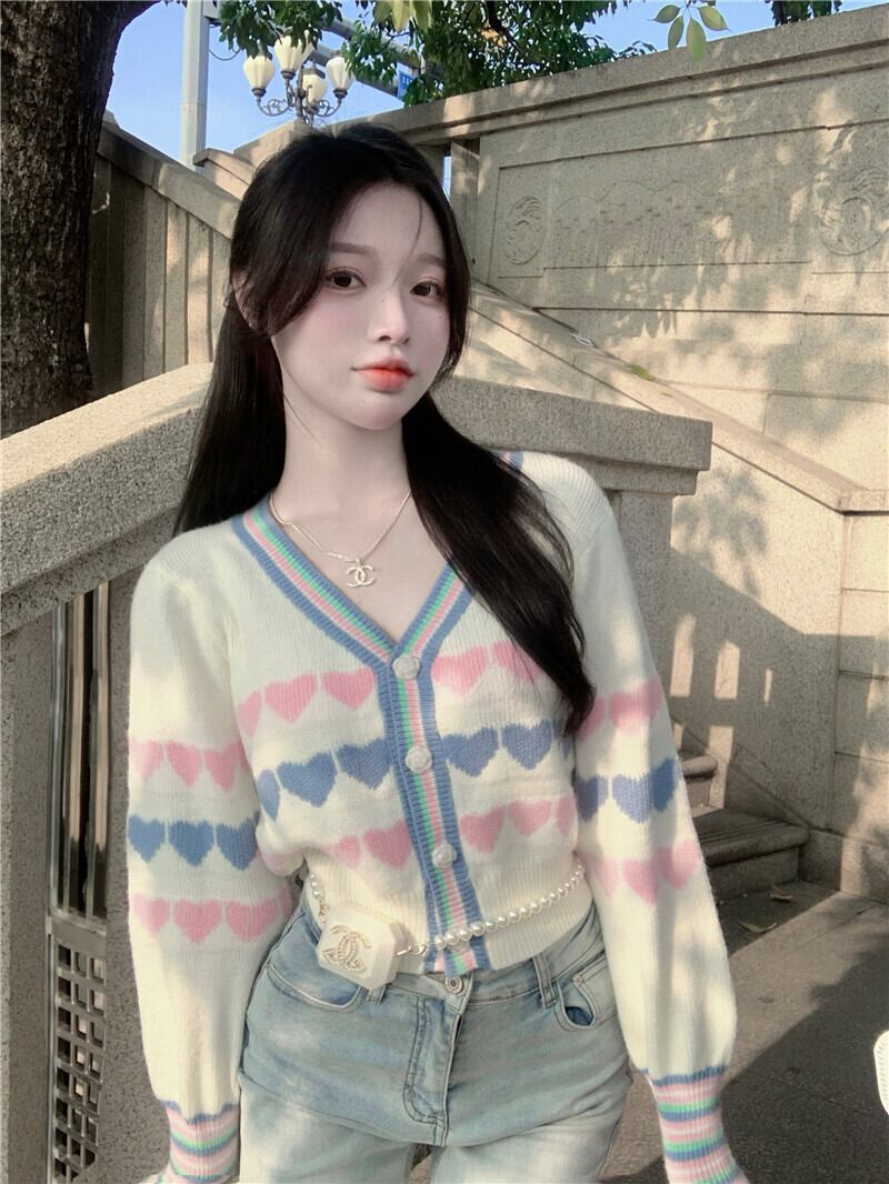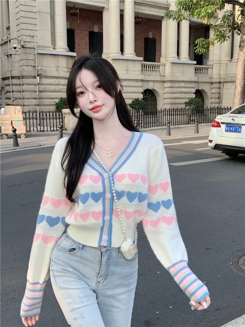 Vネックショートニットカーディガンオータムジャケット ロング 大人ガーリー スウィート キュート カジュアル 秋物 ガールズファッション46010341220