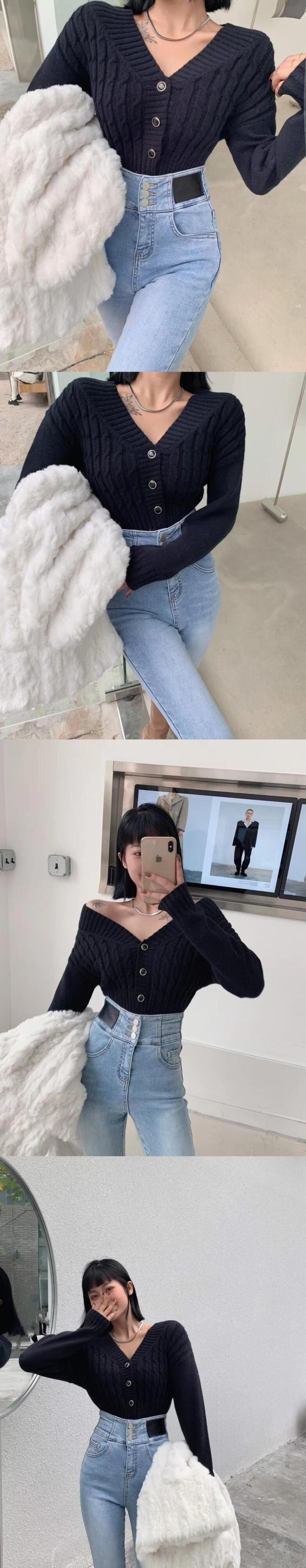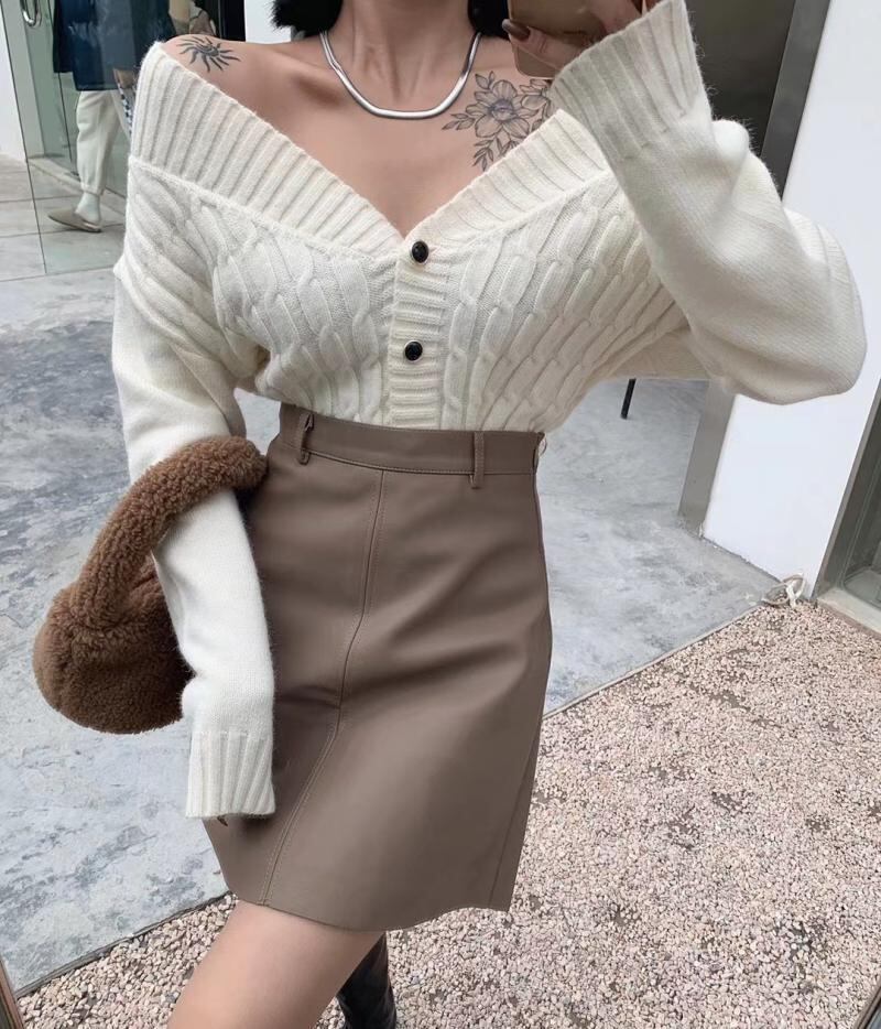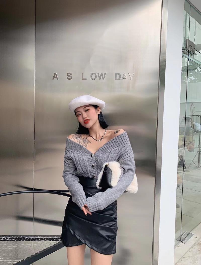 Vネックショートグレーセーター オータムウィンターブラウス ロング 秋物 冬物 オフショルダー ピュア ガールズファッション9593315981