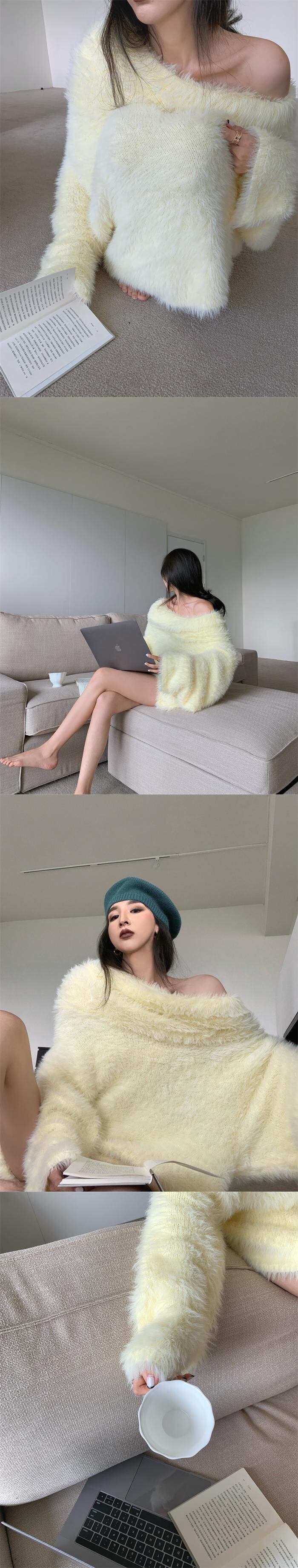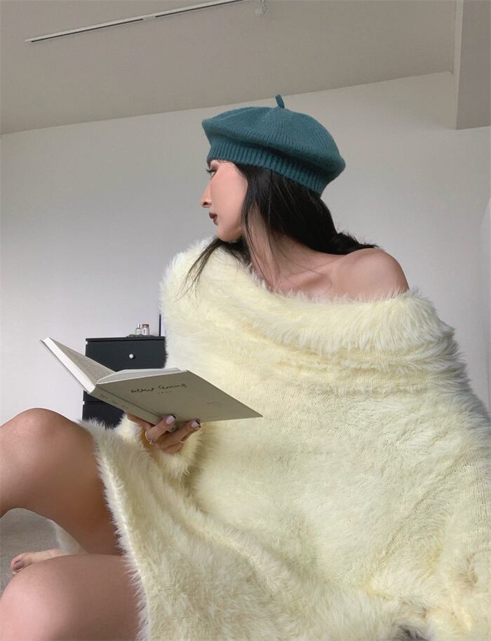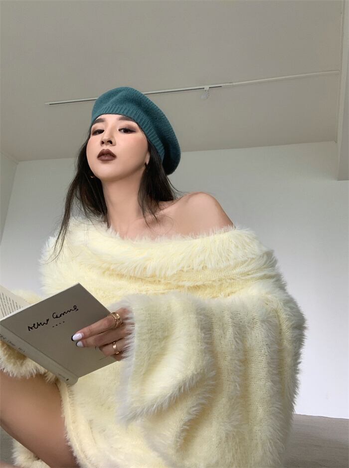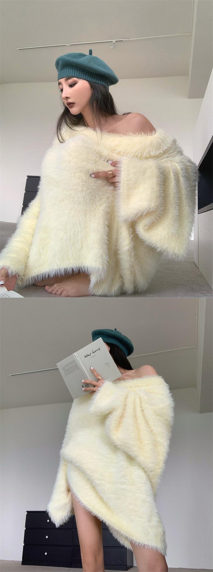 ソリッド カラーセーター オータムルーズプルオーバー トップス ロング 秋物 オフショルダー ソリッドカラー ガールズファッション12316543712