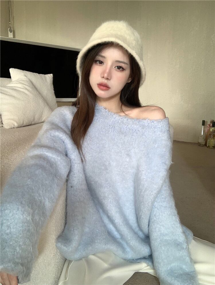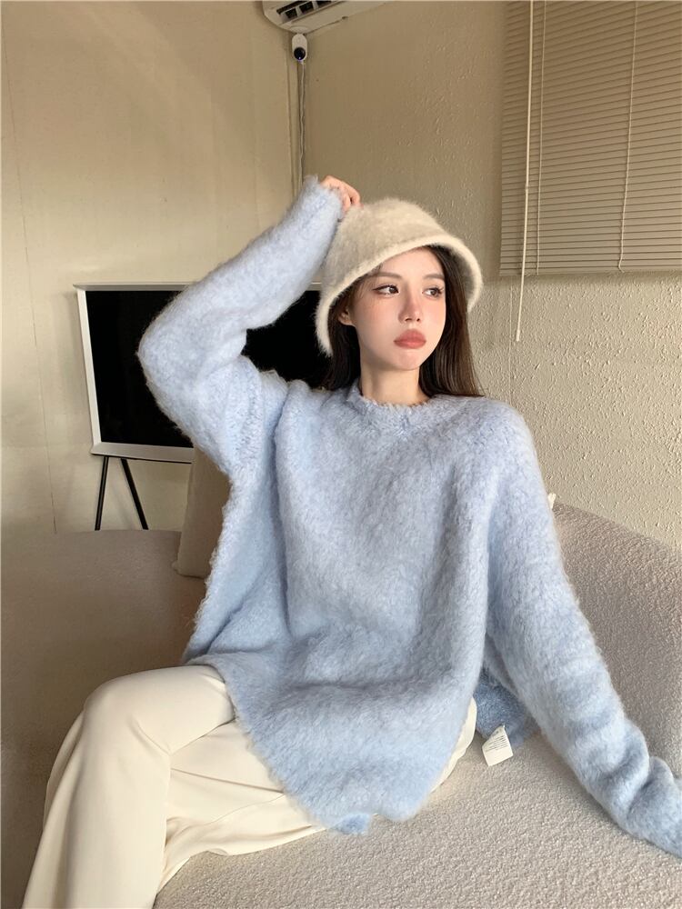 ブルーセーター ルーズカジュアルトップス ロング オータム 秋物 ウィンター 冬物 ガールズファッション95905336813