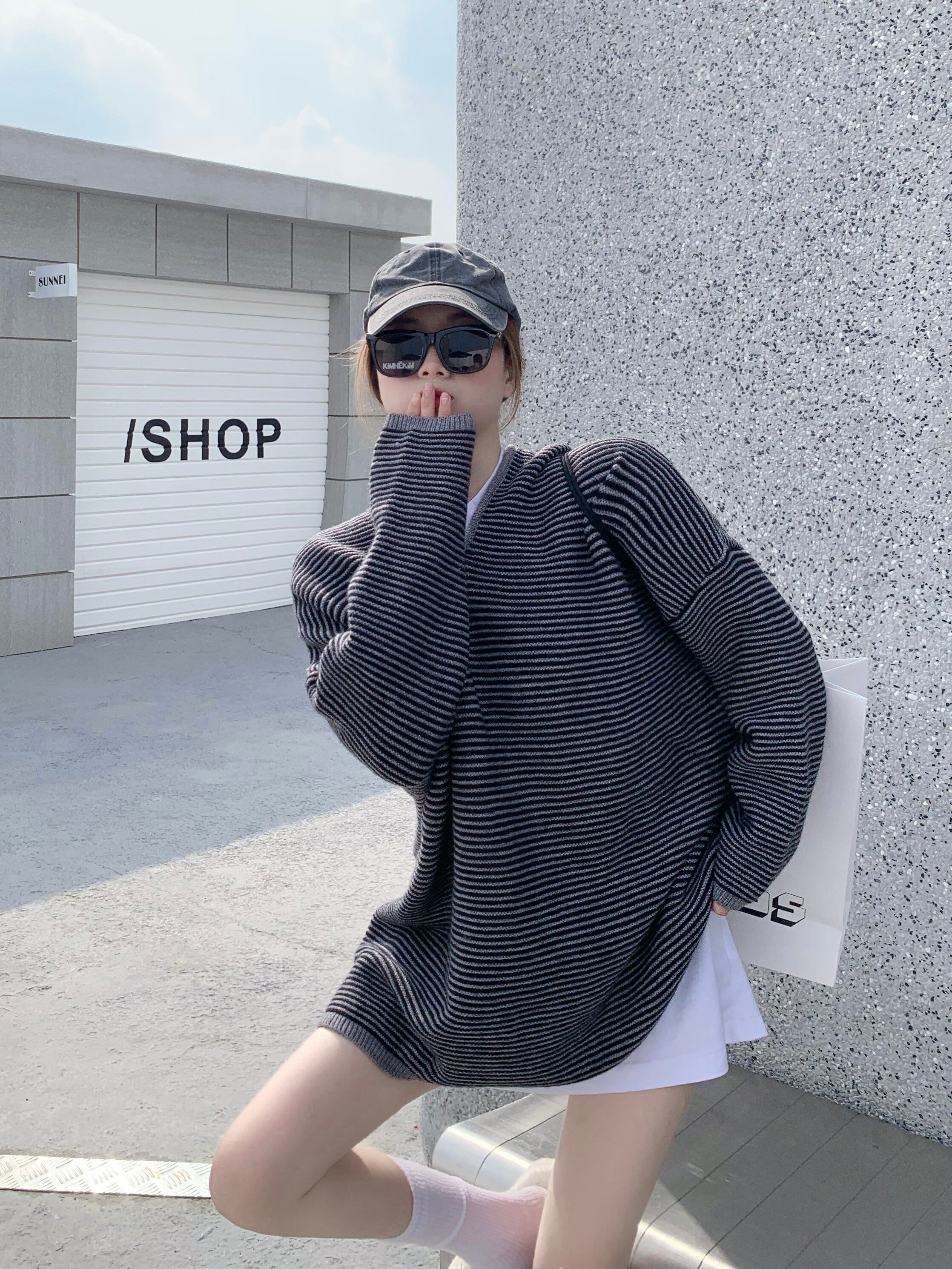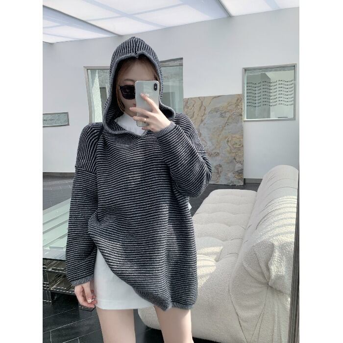 カラーストライプフードスウェット オータムウィンタールーズ薄手トップス ロング 大人ガーリー スウィート キュート カジュアル 秋物 冬物 ガールズファッション72225960423
