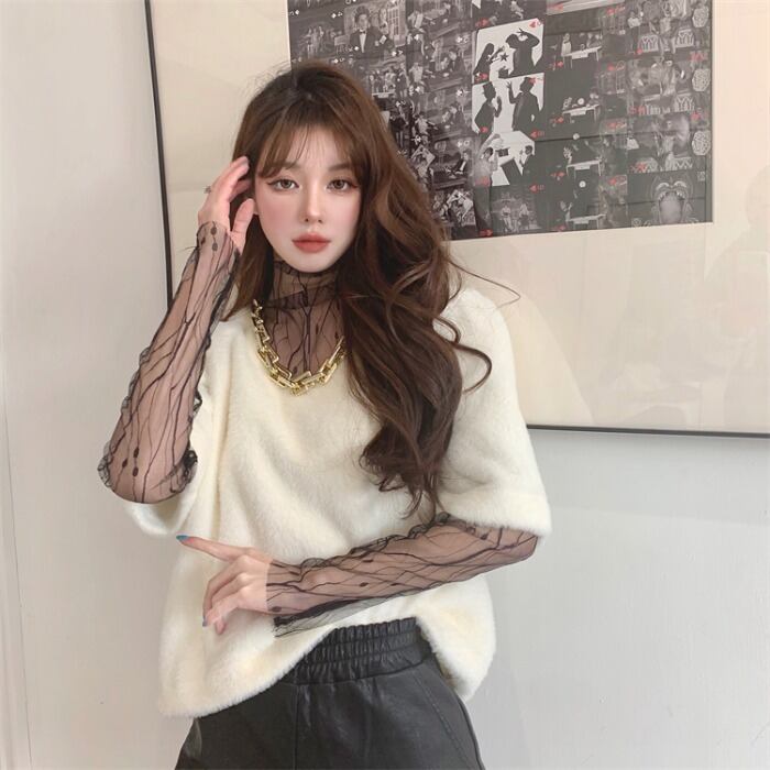 チェーン Vネックセーター オータムウィンタールーズホワイトトップス 秋物 冬物 ガールズファッション6475884928